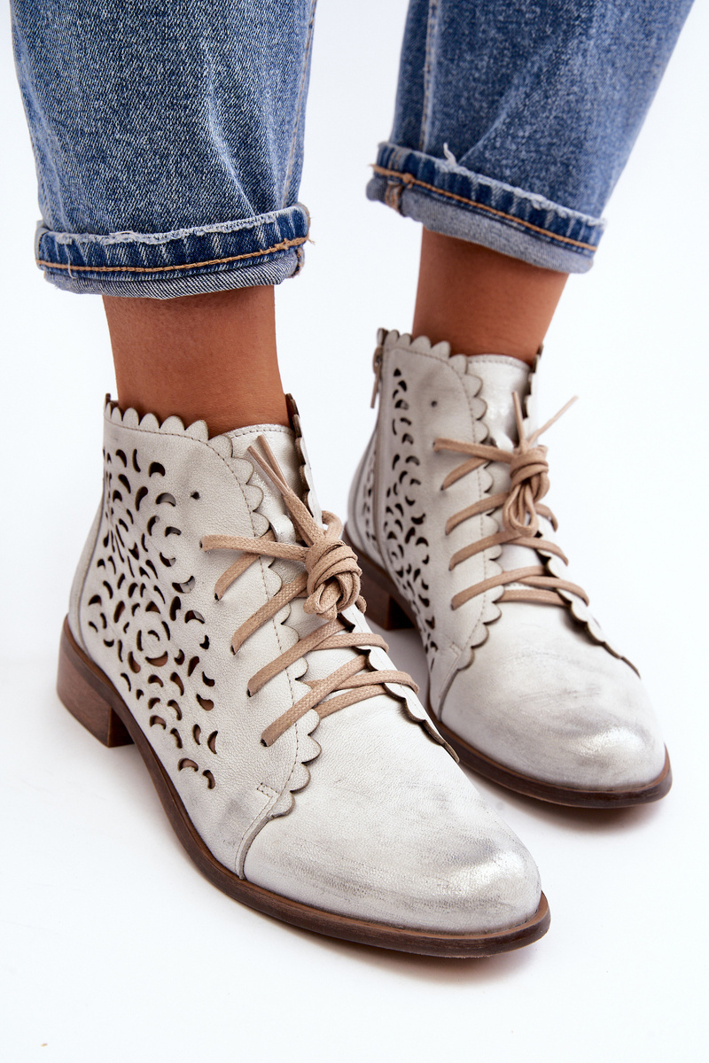 Срібні жіночі ботильйони на шнурівці Zazoo 2871
