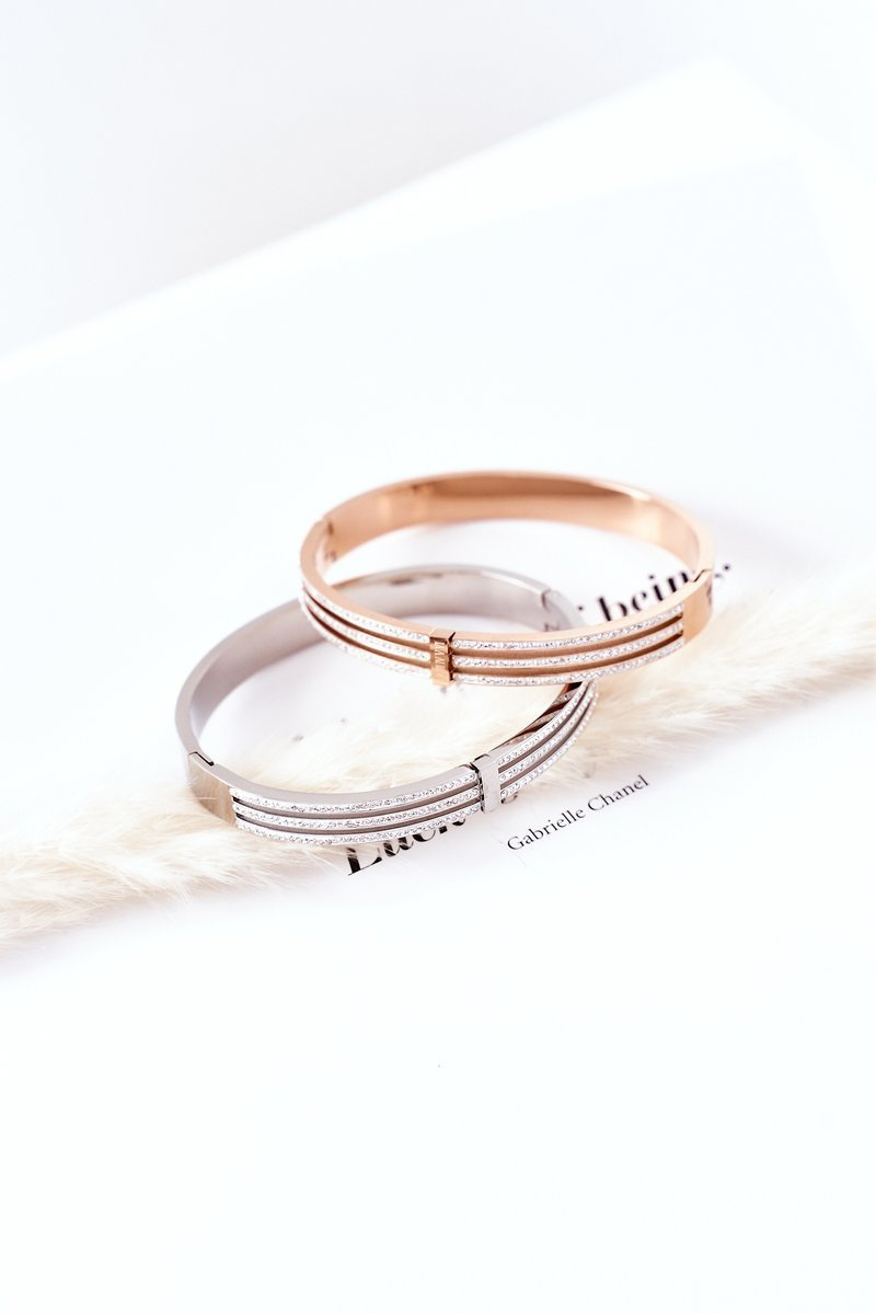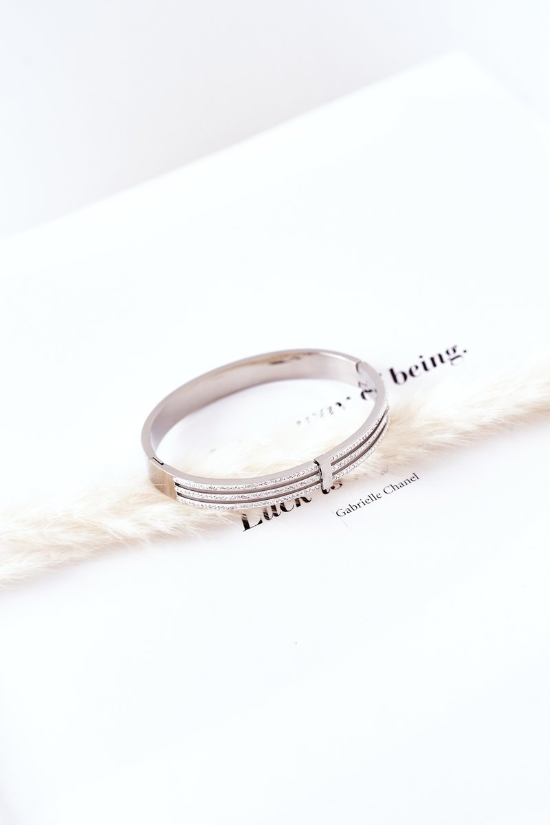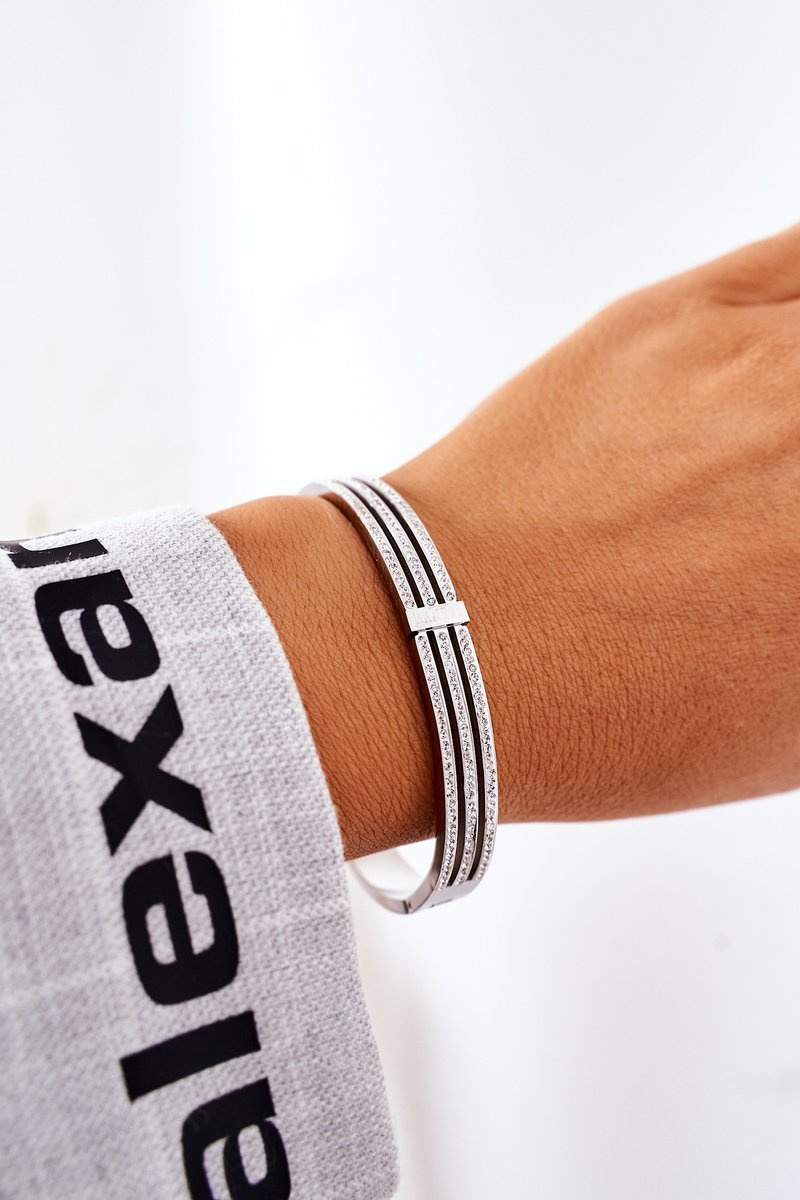 Браслет виготовлений з нержавіючої сталі, прикрашений блискучим фіанітом.