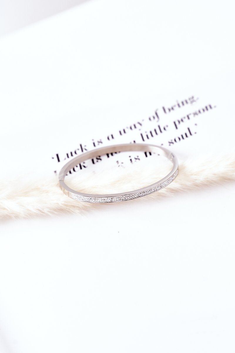 Браслет виготовлений з нержавіючої сталі, прикрашений блискучим фіанітом.