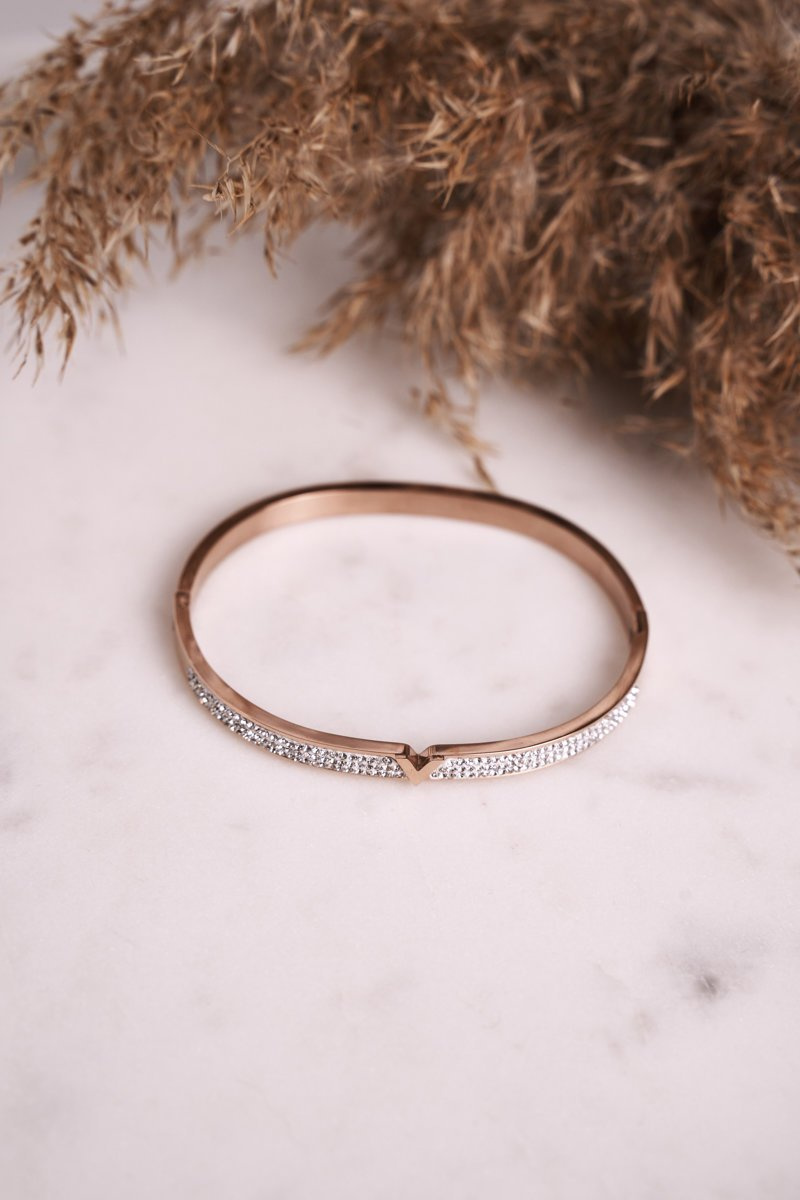 Сталевий браслет з кубічним цирконієм з рожевого золота Venus