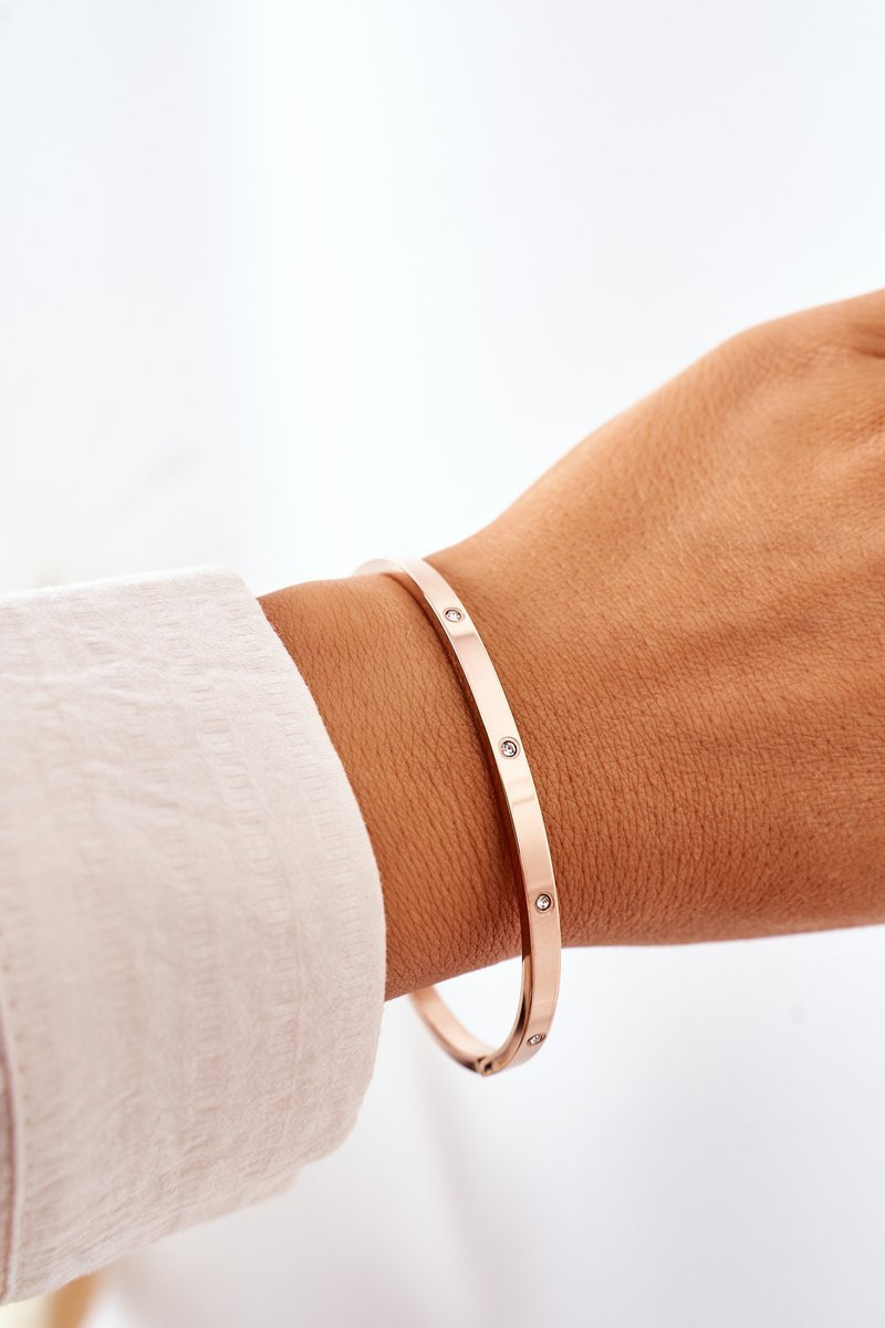 Сталевий браслет із кубічним цирконієм, рожеве золото