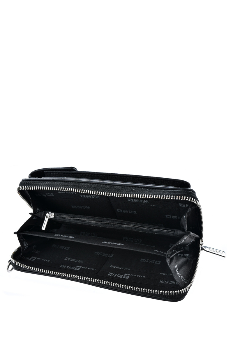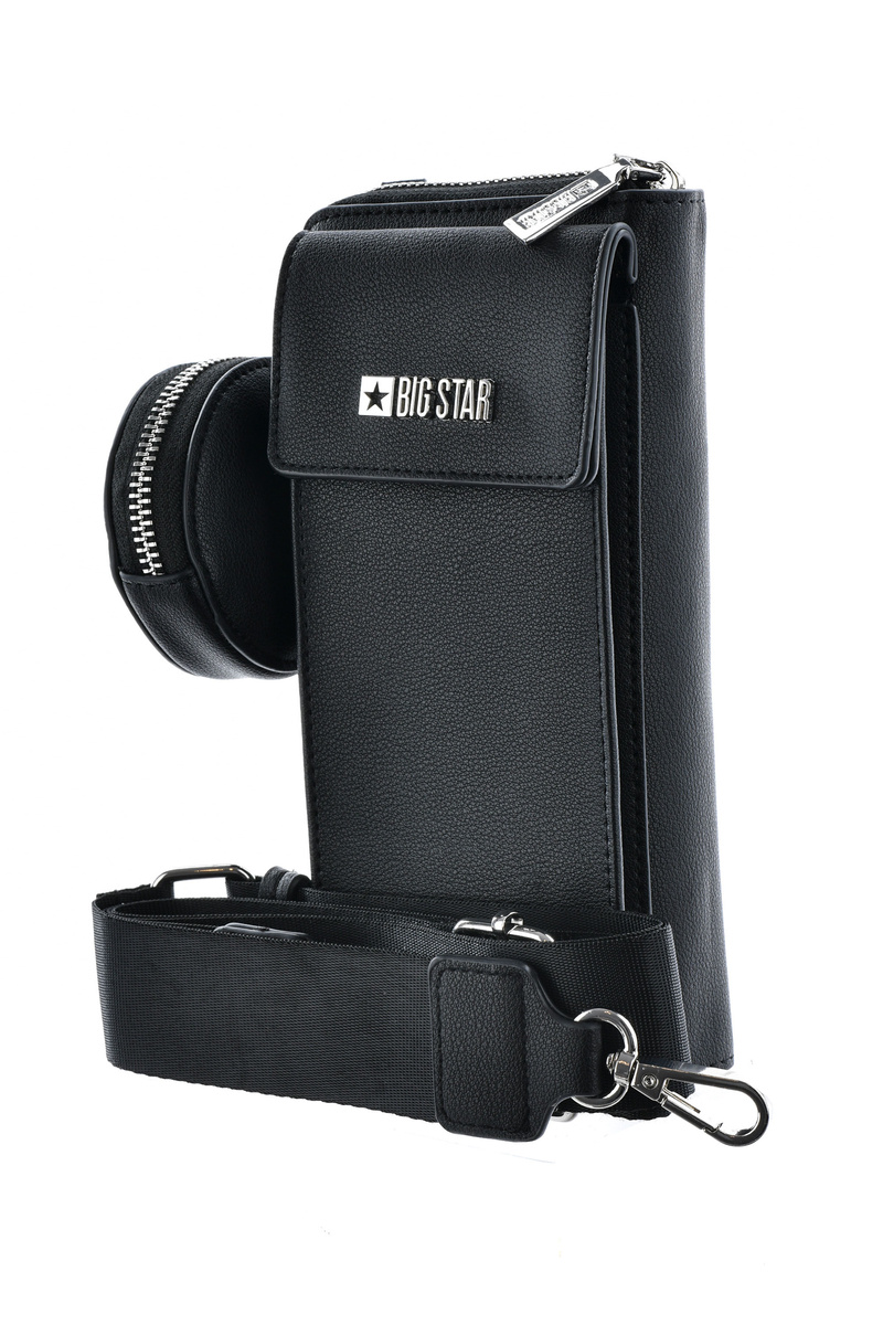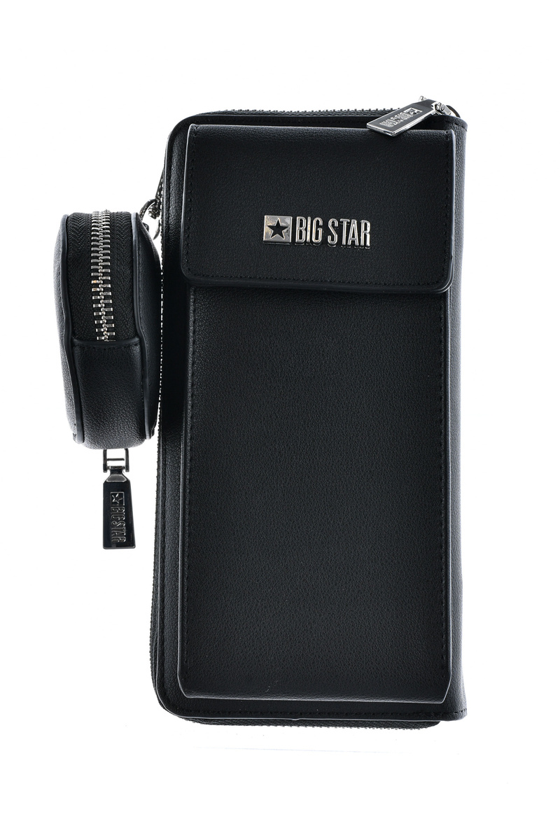 Гаманець - сумка 2в1 Big Star виготовлений з високоякісної еко шкіри. Клапан закривається на магніт. Сумка має відділення і кишеню на блискавці. Всередині також є місце для візиток або ідентифікаційних карток, монет і банкнот. Спереду є логотип бренду Big Star. Ремінець знімний і регулюється. Крім того, до гаманця додається маленький пакетик.