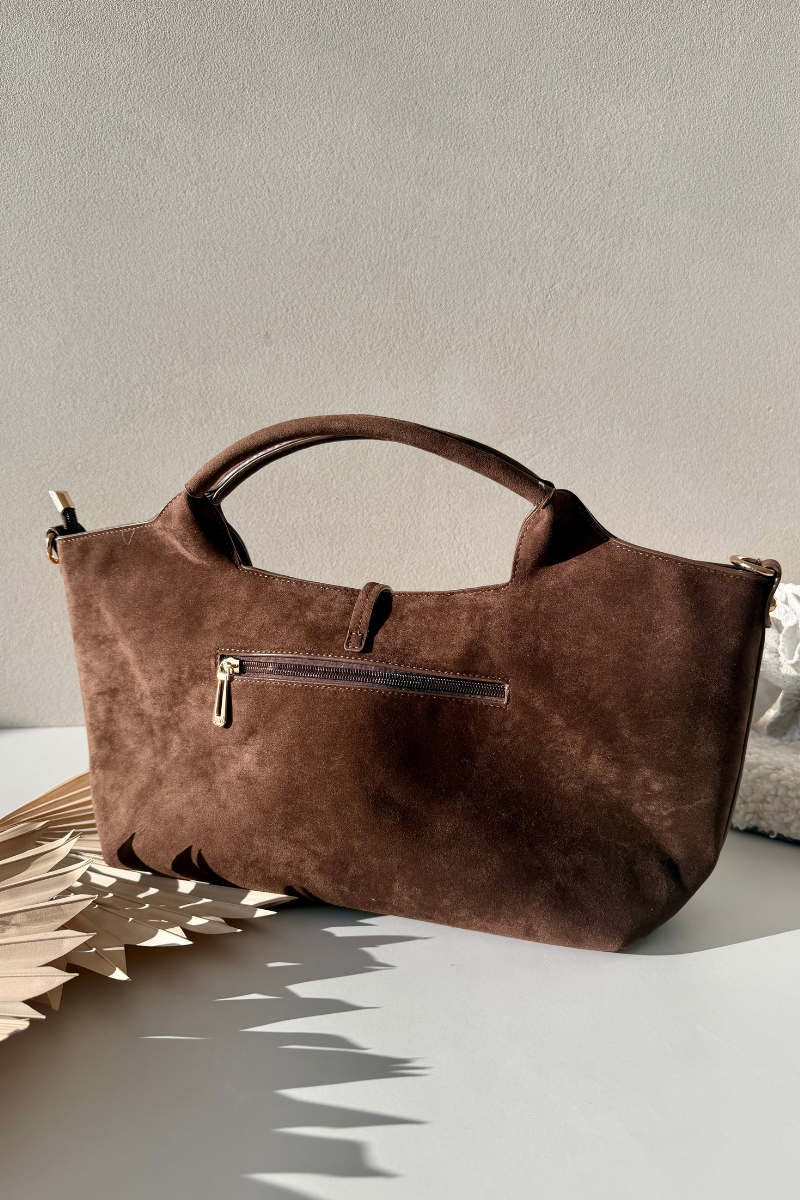 Жіноча сумка з екологічної замші — стильна модель ідеально підходить для щоденного використання. Закривається на застібку-блискавку, що забезпечує безпеку збережених речей. Можна носити її в руці завдяки зручним ручкам або на плечі — завдяки знімному ремінцю. Внутрішньо розташовані три практичні кишені, зокрема одну на блискавці, що полегшує підтримання порядку. Елегантна, функціональна і поза часом — підходить для багатьох стилів.