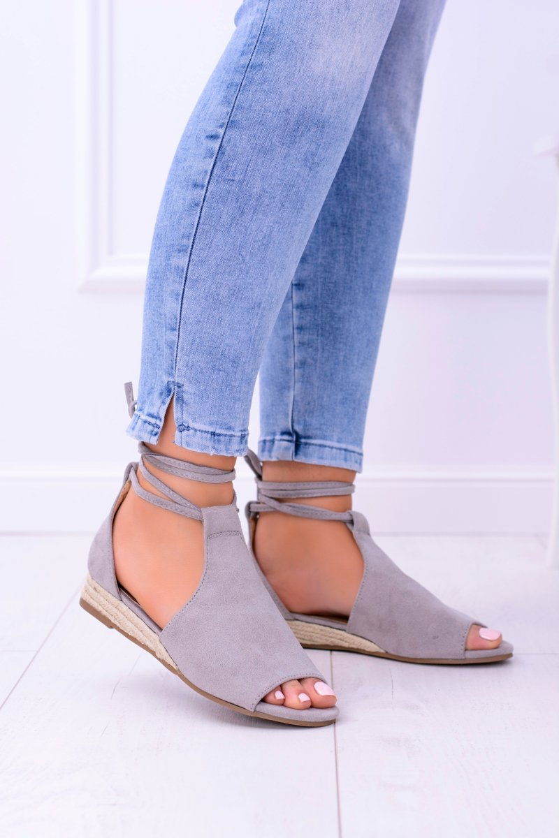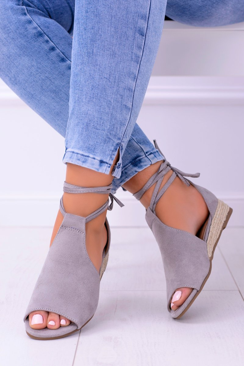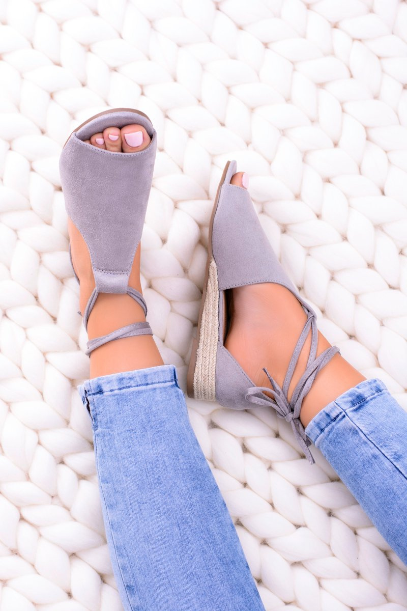 Сірі замшеві босоніжки на легкій платформі Espanoso