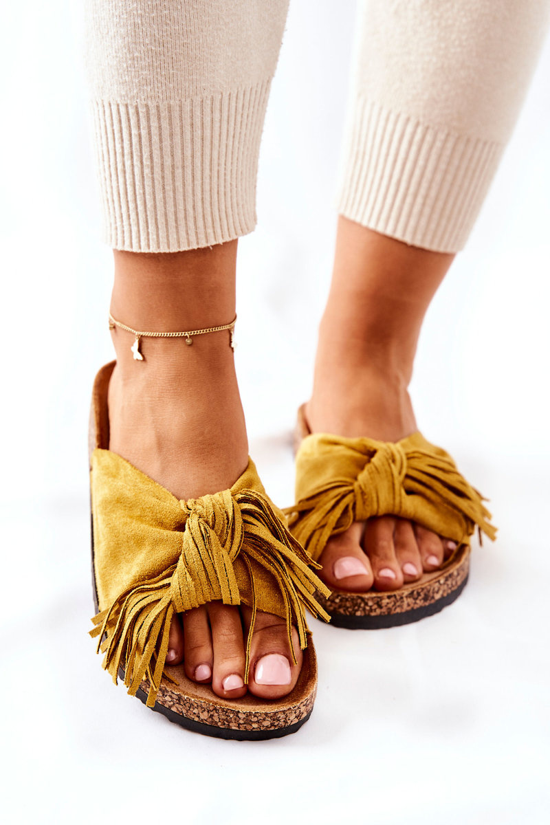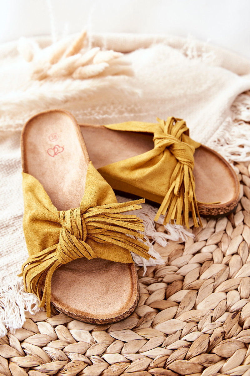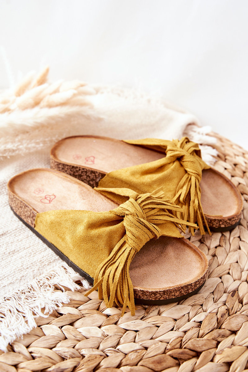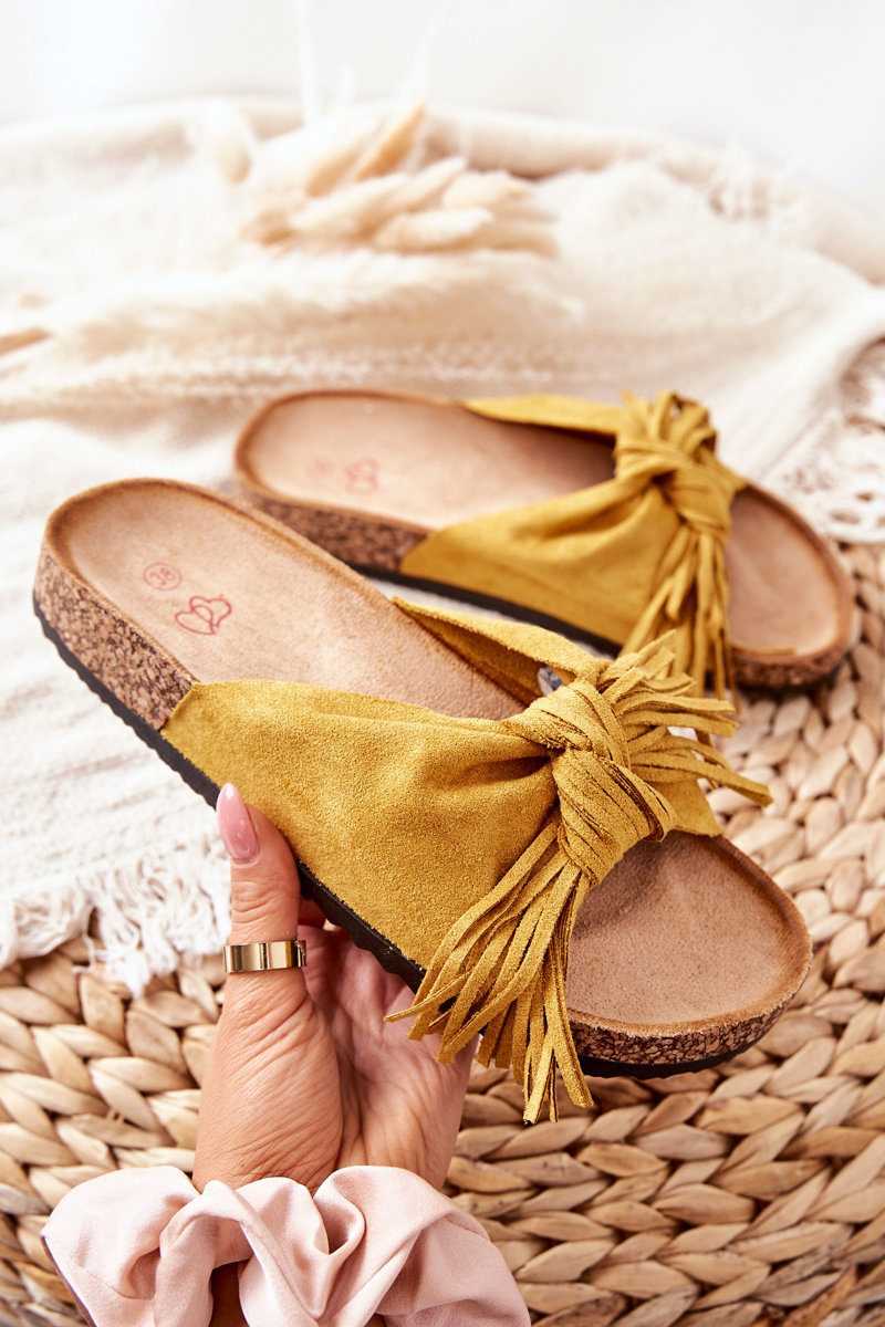 Красиві тапочки на корковій підошві. Взуття має профільовану устілку, що гарантує максимальний комфорт. Верх виготовлений з м'якої еко замші, приємної на дотик. Тапочки доступні в багатьох гарних кольорах! При виборі розміру скористайтеся таблицею розмірів.