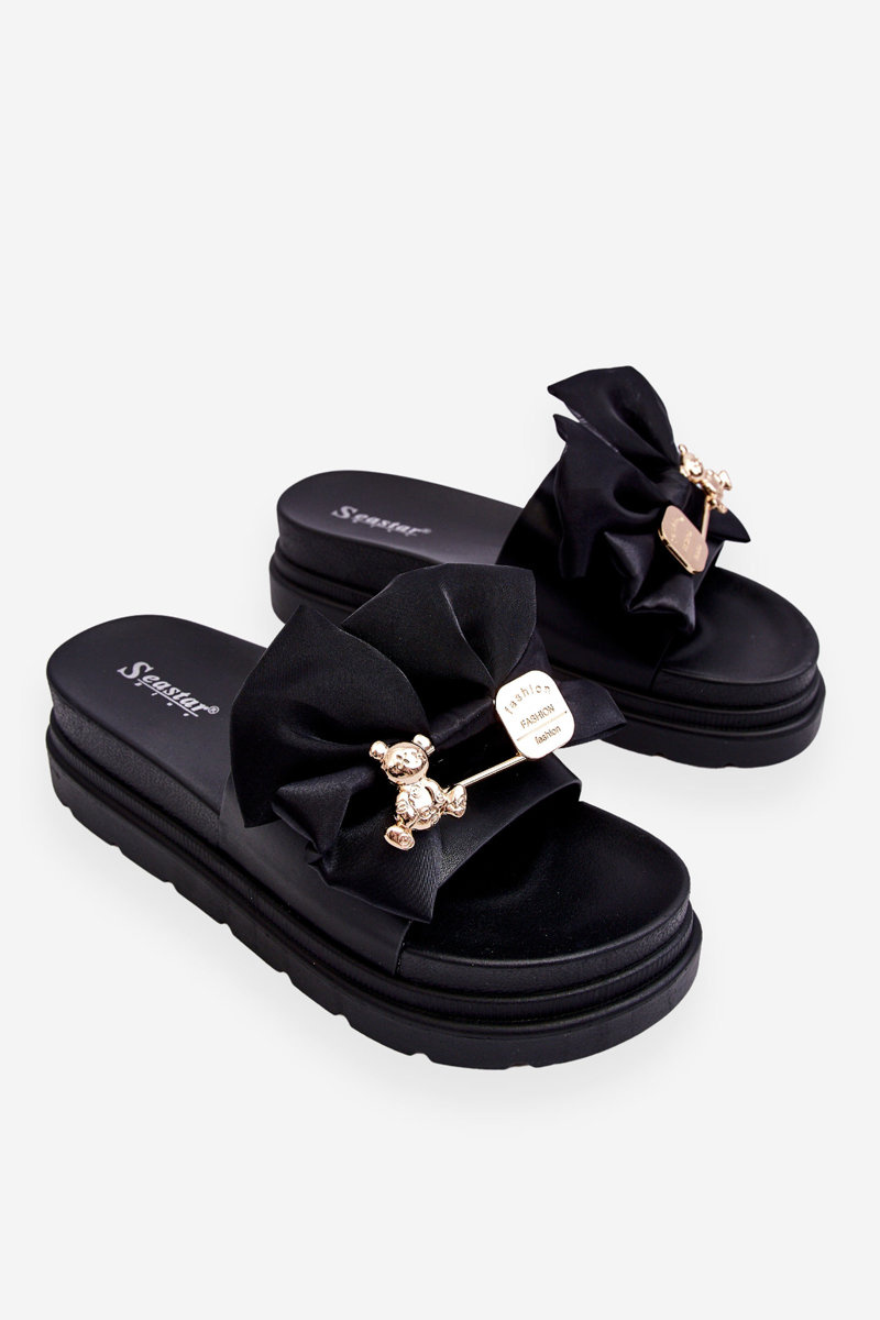 Тапочки з бантом і ведмедиком Чорний Сюзі