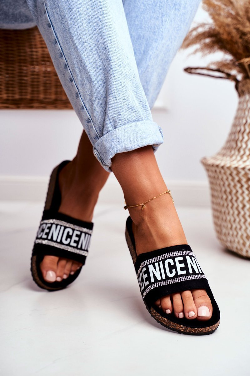 Тапочки на корковій підошві з кубічним цирконієм, чорні Be Nice