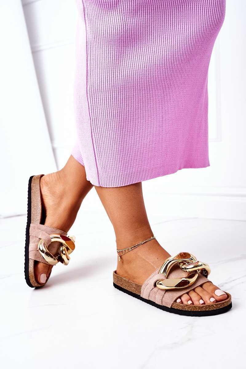 Тапочки на корковій підошві з ланцюжком S.Barski SB001 Бежеві