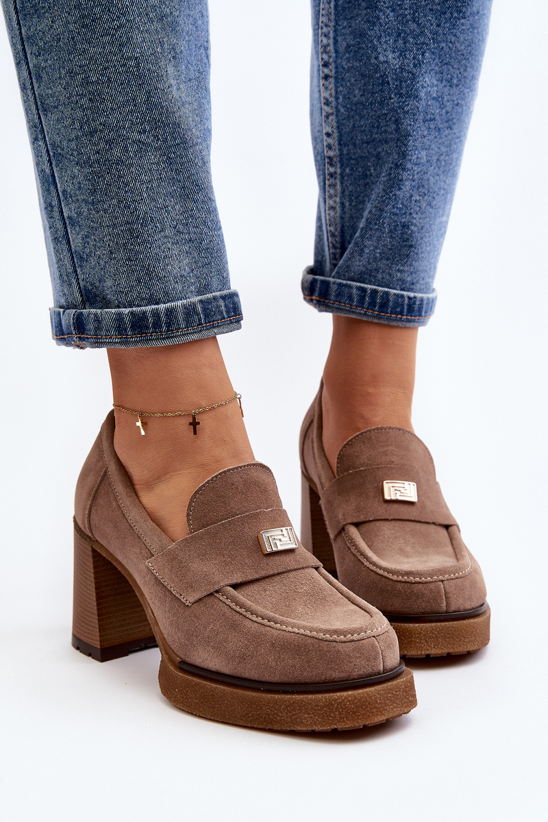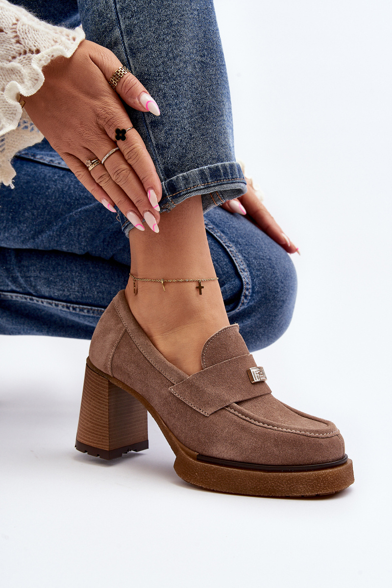 Темно-бежеві замшеві туфлі на високих підборах Zazoo 20169
