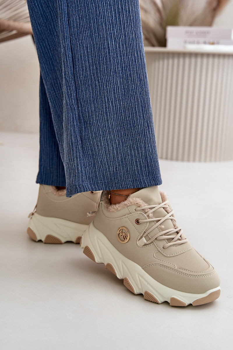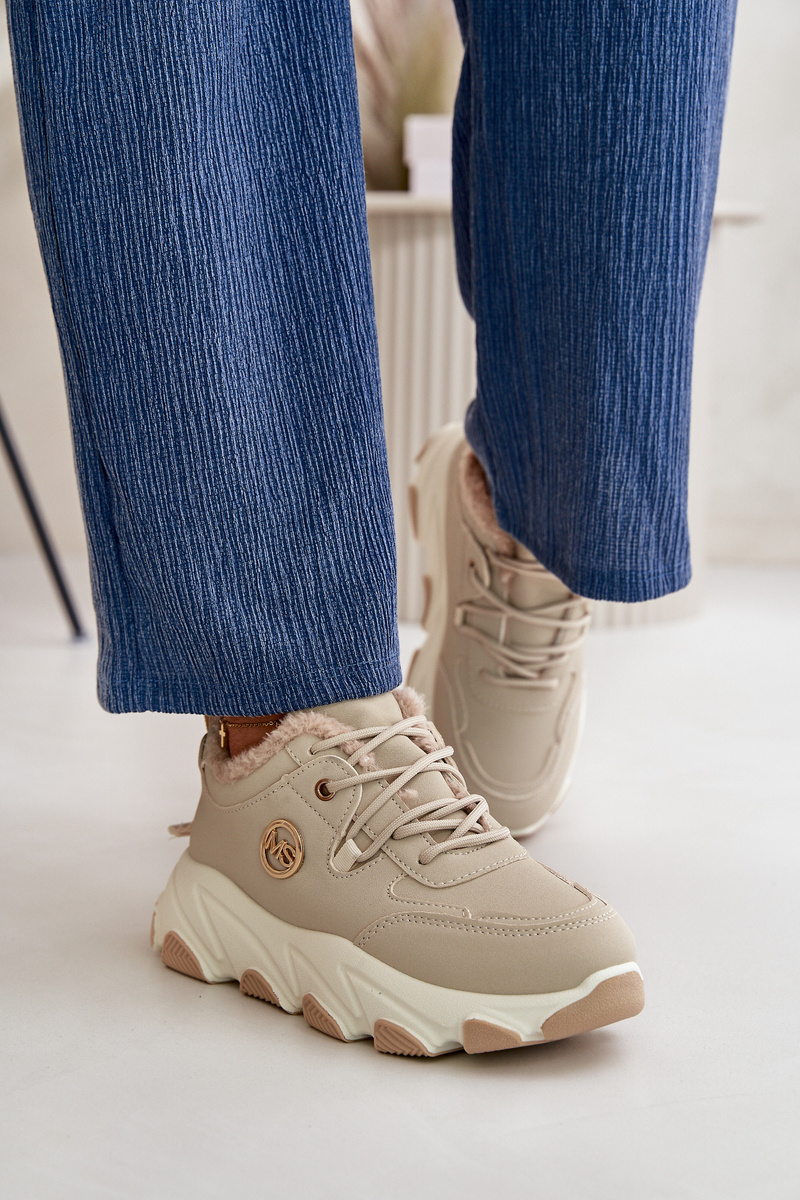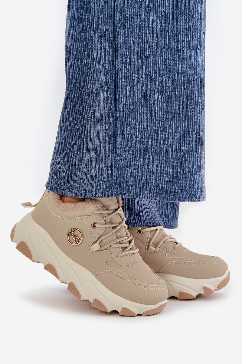 Тепле жіноче спортивне взуття на шнурівці на платформі бежевого кольору Bialoa