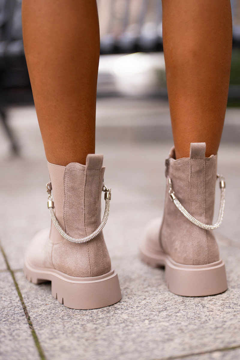 Теплі ботильйони на блискавці та декоративному ремінці Labenne бежевого кольору