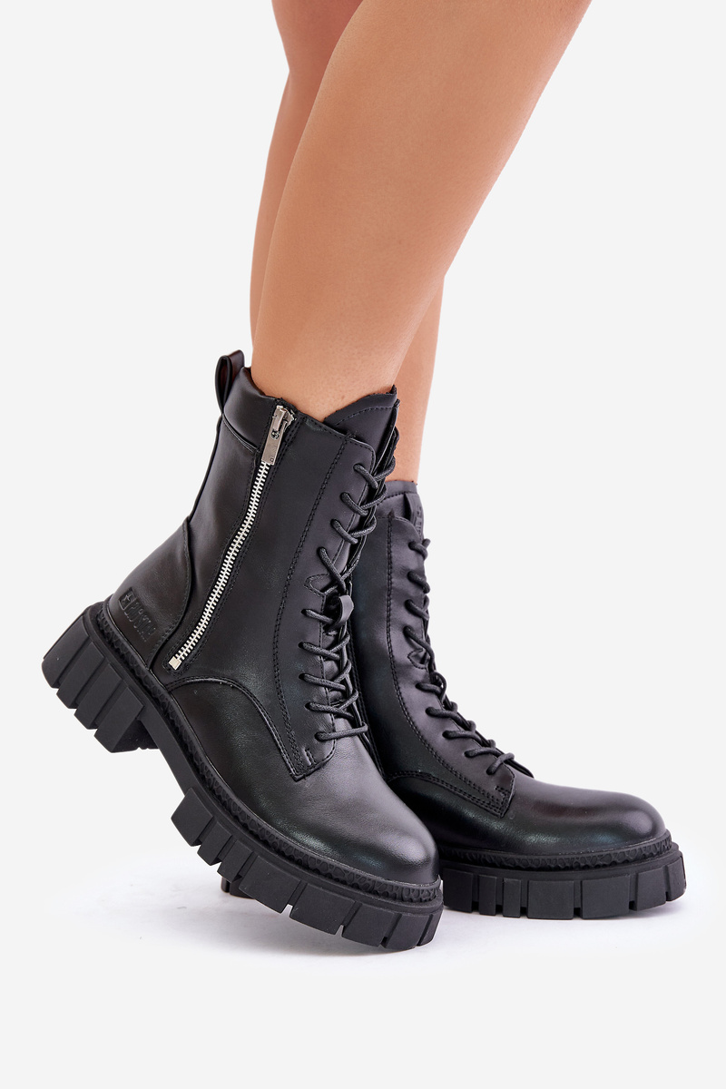Робочі черевики від бренду Big Star з екошкіри – стильний вибір для прохолодних днів. Модель застібається на блискавку і шнурується, що забезпечує ідеальну посадку на нозі. Утеплені взуттєвим флісом, вони гарантують тепловий комфорт. На платформі та плоскій каблуці вони поєднують комфорт із модним дизайном. У верхній частині штанини є декоративний ремінець із пряжкою, що додає їм виразності. Ідеально підходить для повсякденного та міського стилів. Обираючи розмір, орієнтуйтеся на таблицю розмірів.
