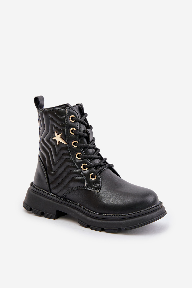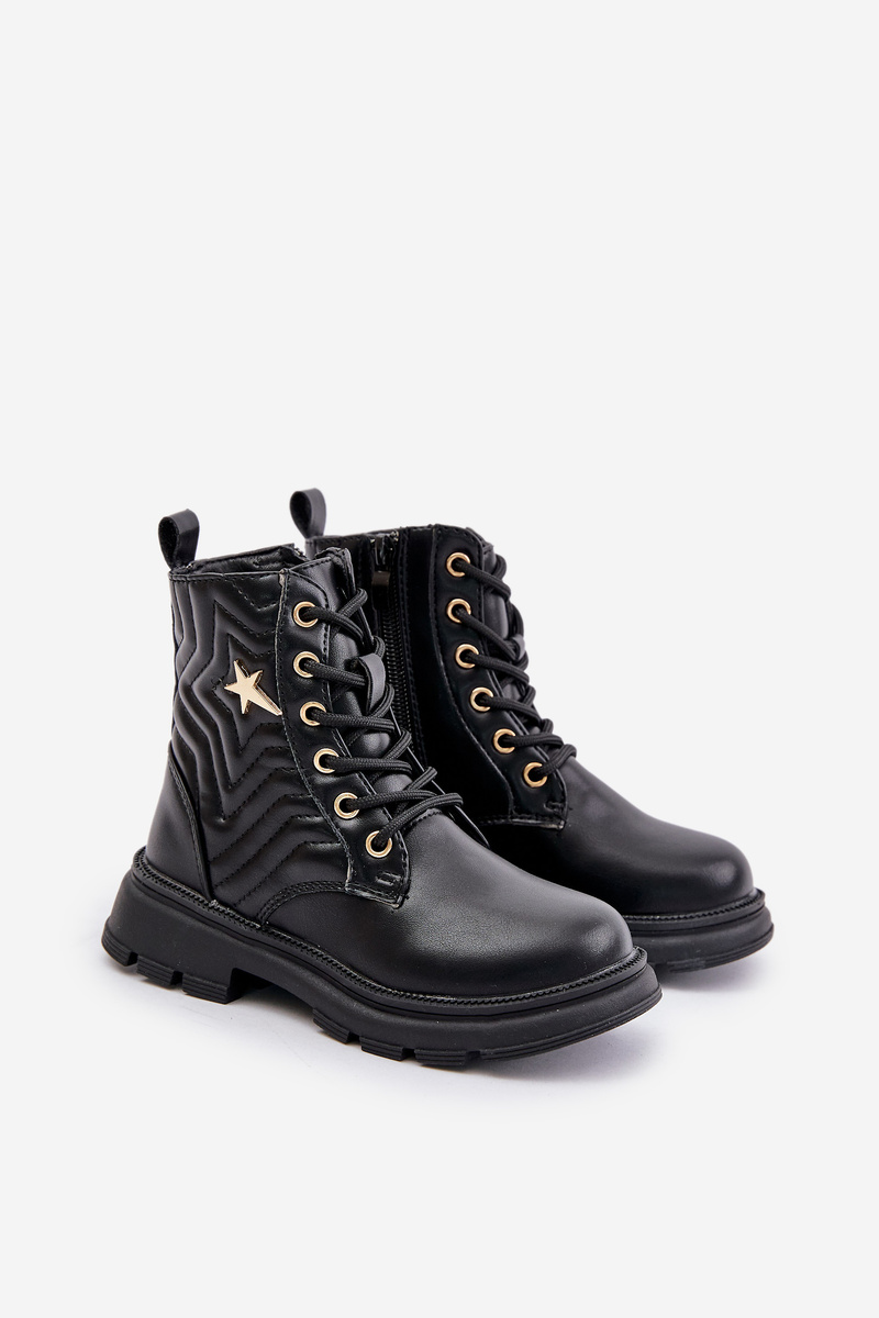 Черевики дитячі з еко шкіри на гумовій підошві. Всередині вистелена ковдрою для взуття для додаткового тепла. Взуття зі шнурівкою та блискавкою ідеально підходить для прохолодних днів. Шнурки декоровані. У цих черевиках ваша дитина буде виглядати винятково! Не вагайтеся, купуйте їх сьогодні! Обираючи розмір, орієнтуйтеся на таблицю розмірів.