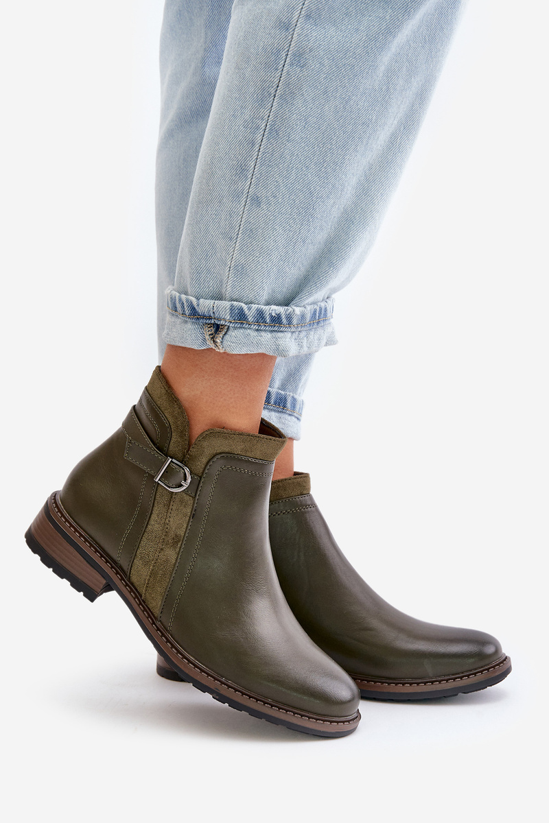 Теплі жіночі ботильйони з еко шкірою Taitha на застібці на низькому ходу