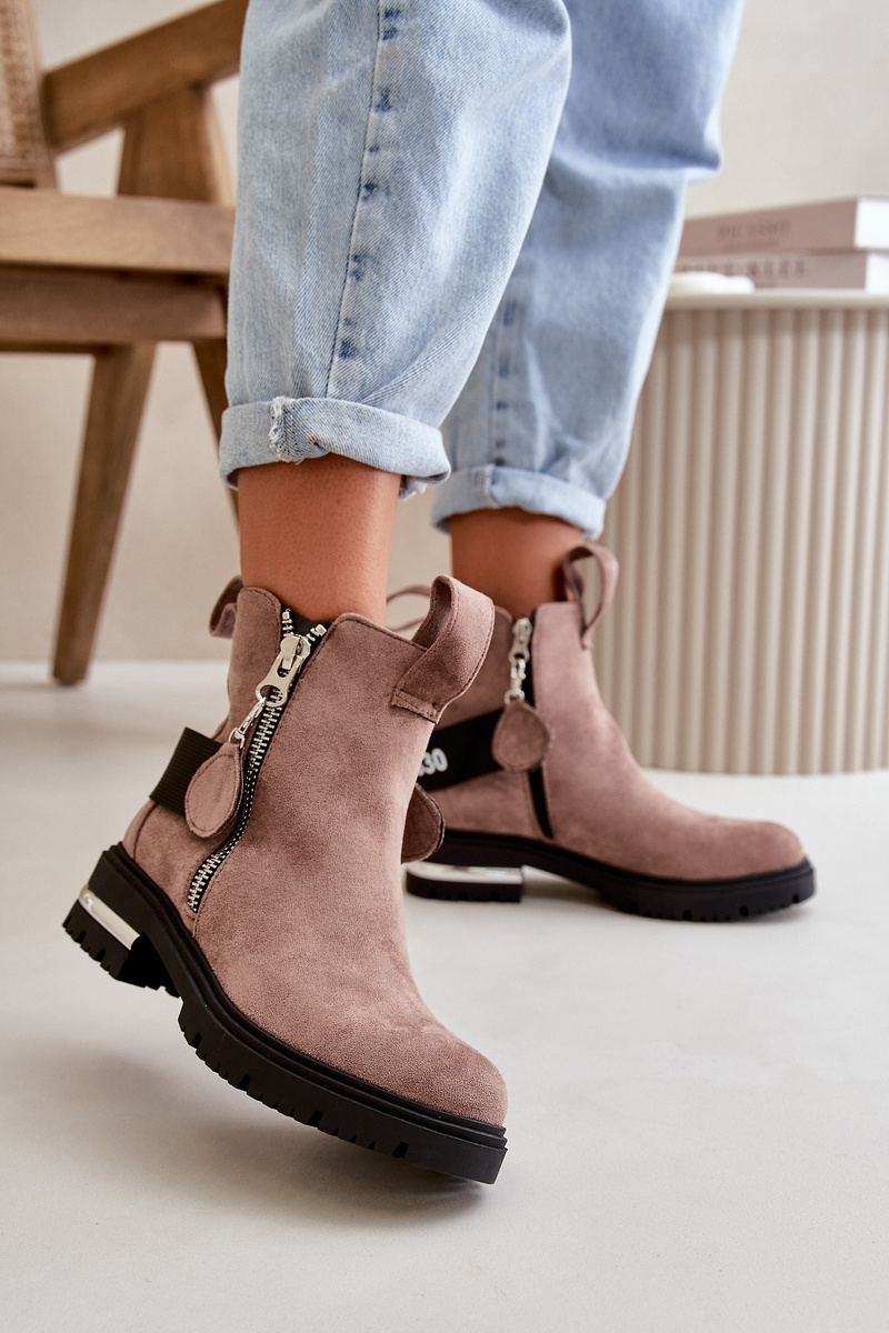 Теплі жіночі ботильйони на блискавці темно-бежевого кольору Calvaro