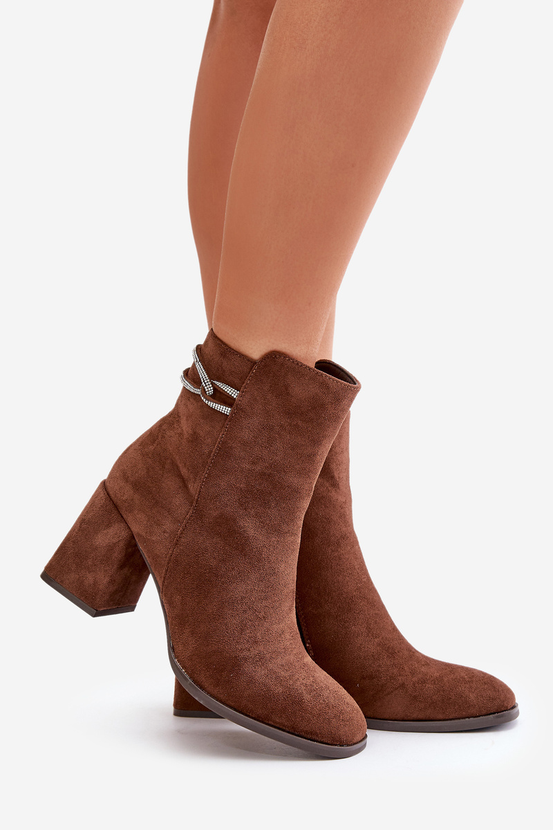 Жіночі ботильйони з еко замші. Встановлюють на стійкий каблук. Модель з більш високою халявою, застібається на блискавку. Зсередини утеплено взуттєвим флісом. Ідеально підходить для багатьох стилів, наприклад: із сукнями, спідницями чи брюками. Цей елегантний дизайн повинен бути у вашому гардеробі! Обираючи розмір, орієнтуйтеся на таблицю розмірів.