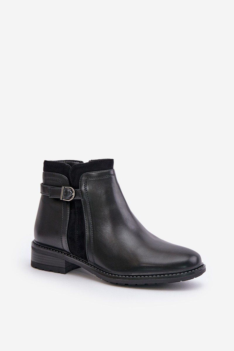 Теплі жіночі ботильйони на низькому ходу та блискавці з екошкіри Taitha чорного кольору
