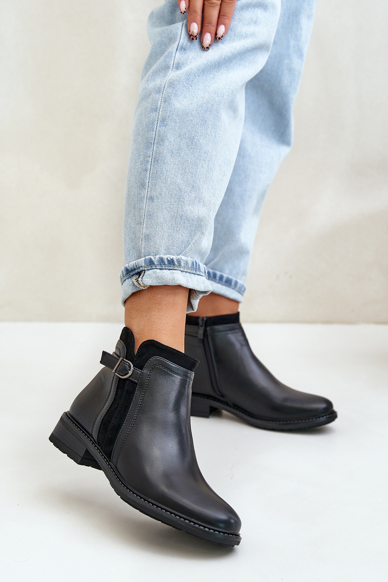 Класичні жіночі ботильйони ідеально підходять для багатьох стилів! Виготовлений з екологічно чистої шкіри. Комплект на плоскій каблуці. Верх прикрашений ремінцем з невеликим декором. Всередині обшито взуттєвим флісом. Пальці ніг округлі. Обираючи розмір, орієнтуйтеся на таблицю розмірів.