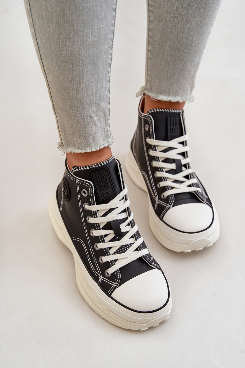Жіночі кросівки від бренду Big Star. Виготовлений з високоякісного PU матеріалу, що нагадує натуральну шкіру. Встановлений на масивній платформі, яка не тільки додає кілька сантиметрів у висоту, але й забезпечує винятковий комфорт під час носіння протягом усього дня. Класична шнурівка та закруглений носок надають позачасовому вигляду. Логотип бренду збоку на верху. Обираючи розмір, орієнтуйтеся на таблицю розмірів.