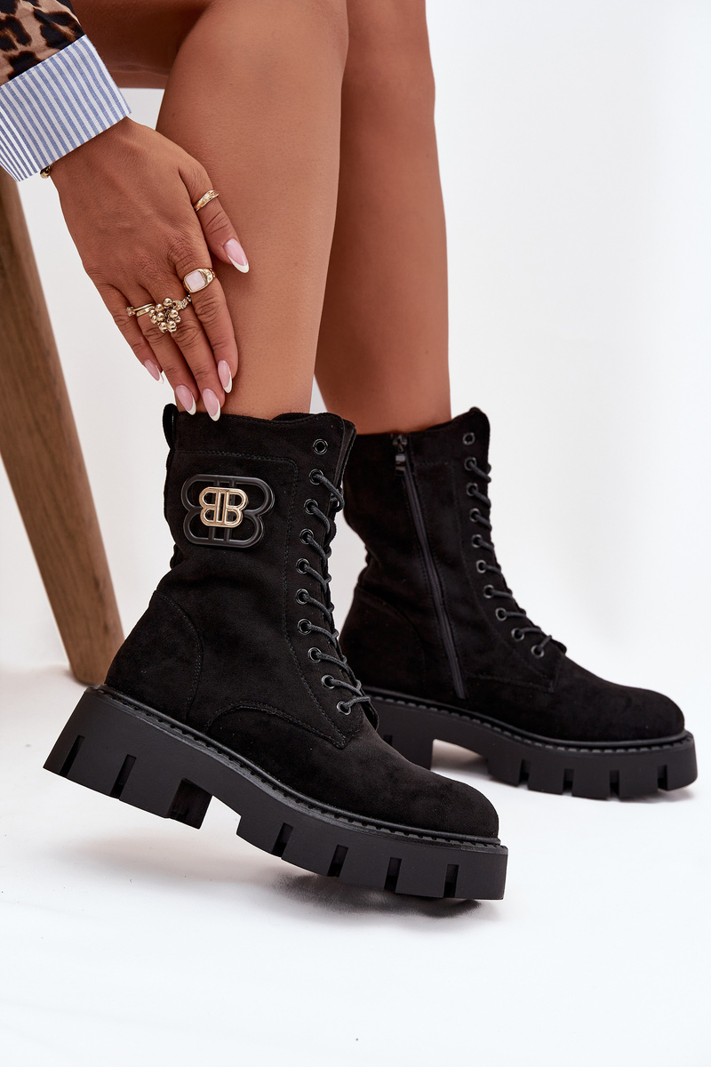 Теплі жіночі робочі чоботи з оздобленням чорні Melisse