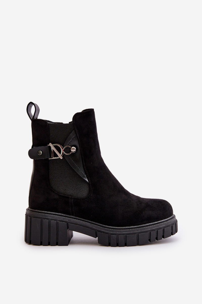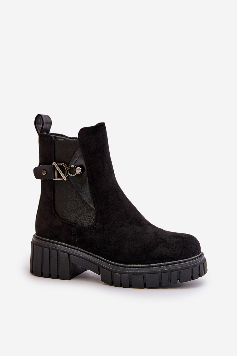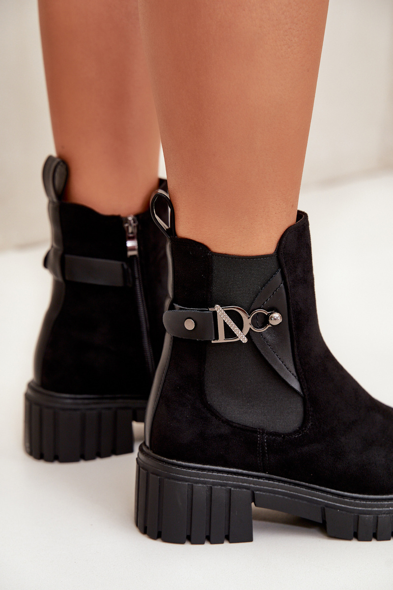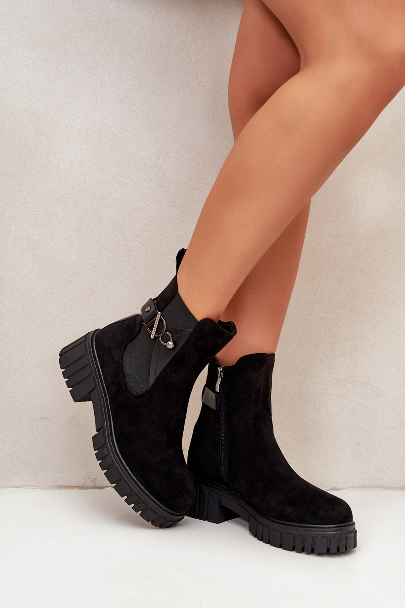 Теплі жіночі черевики з золотистими деталями, еко-замша чорного кольору Bervena