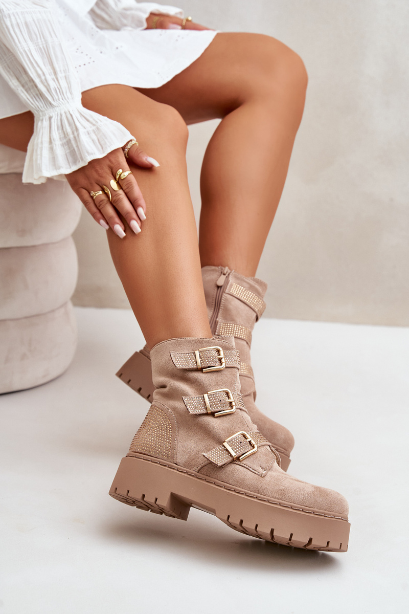 Теплі жіночі чоботи з пряжками Tiaeliana бежеві