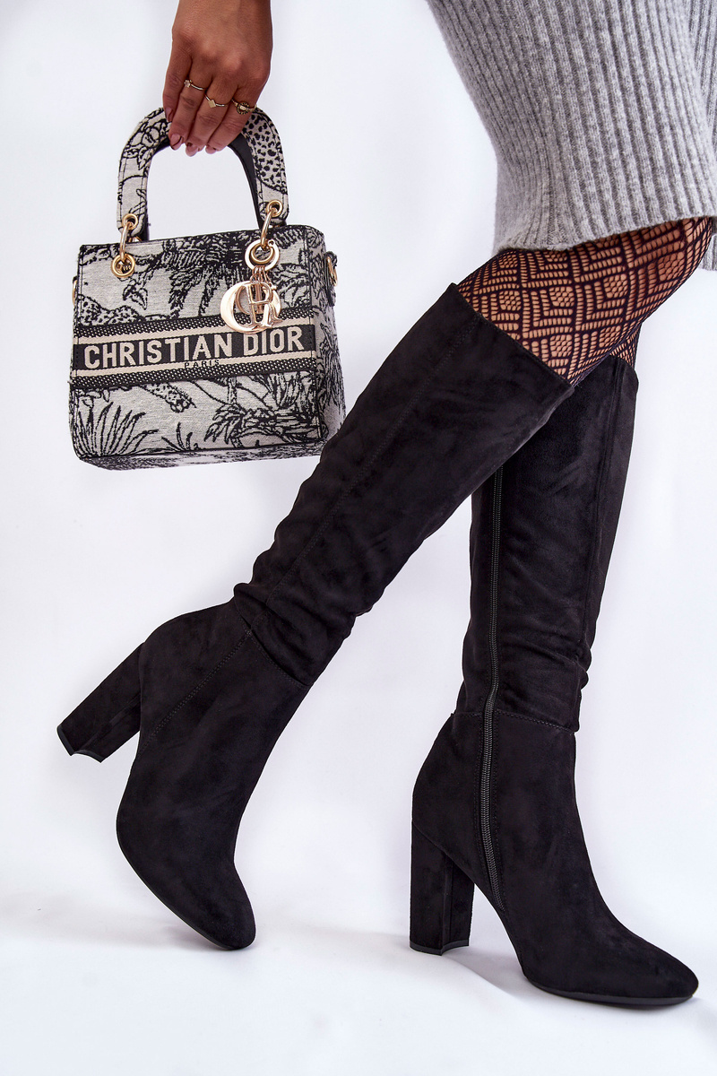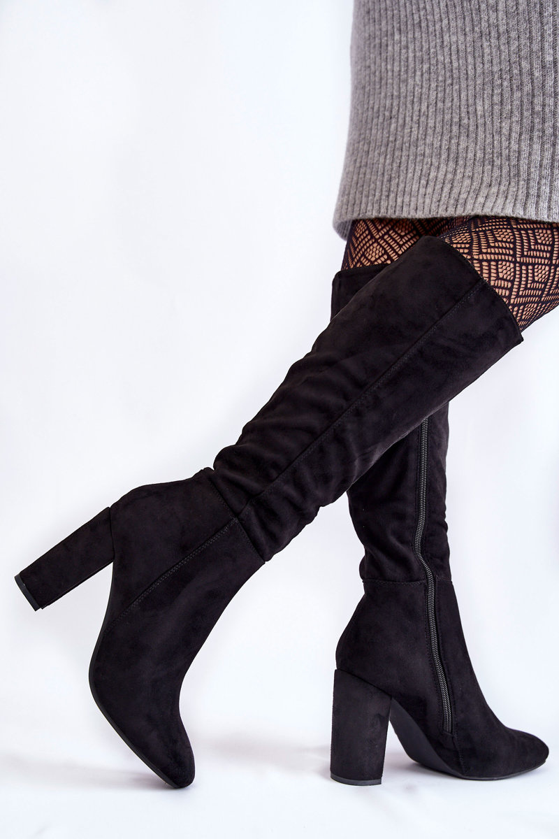 Теплі замшеві чоботи на підборах Чорні Obsessive