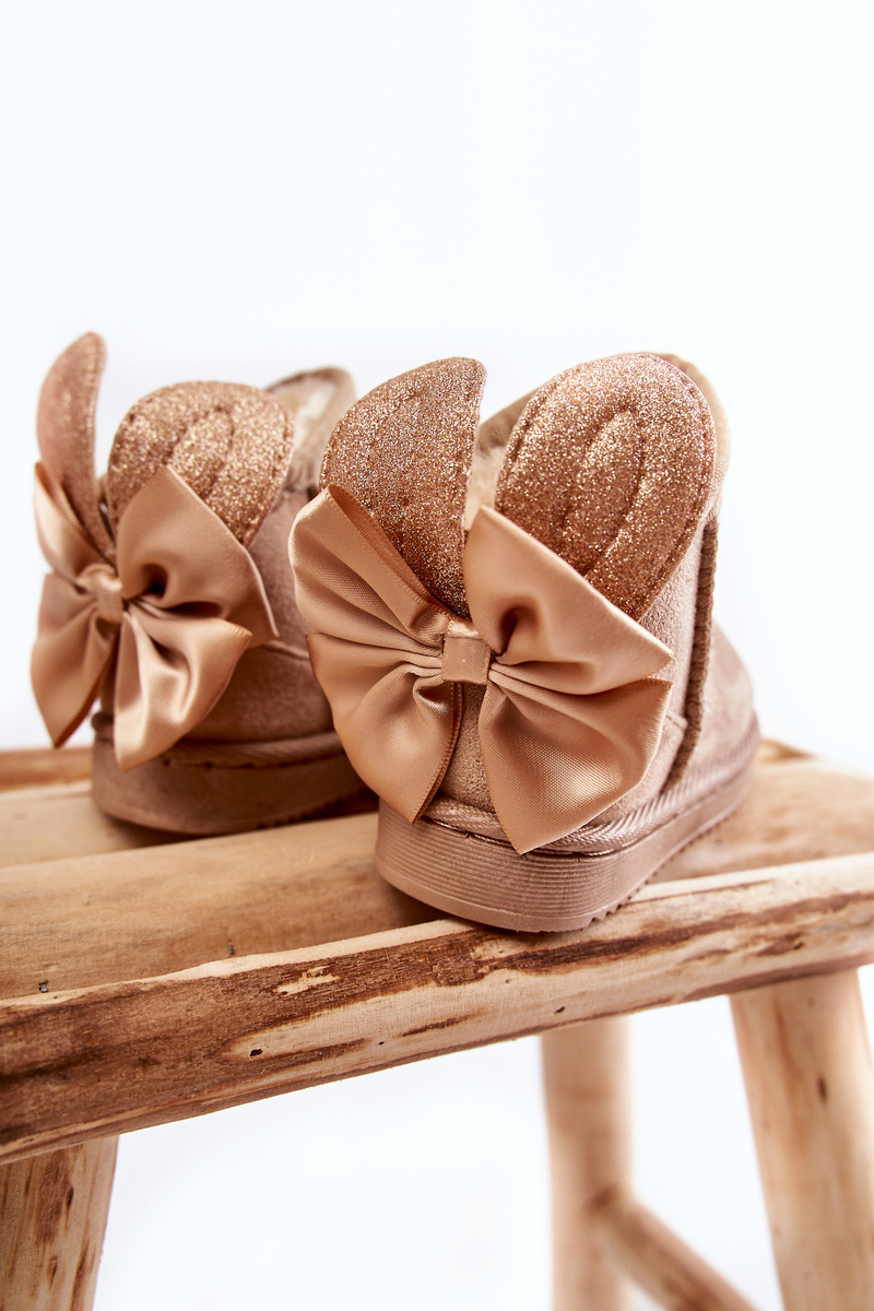 Теплі зимові черевики з бантами для дівчинки бежеві Meriva
