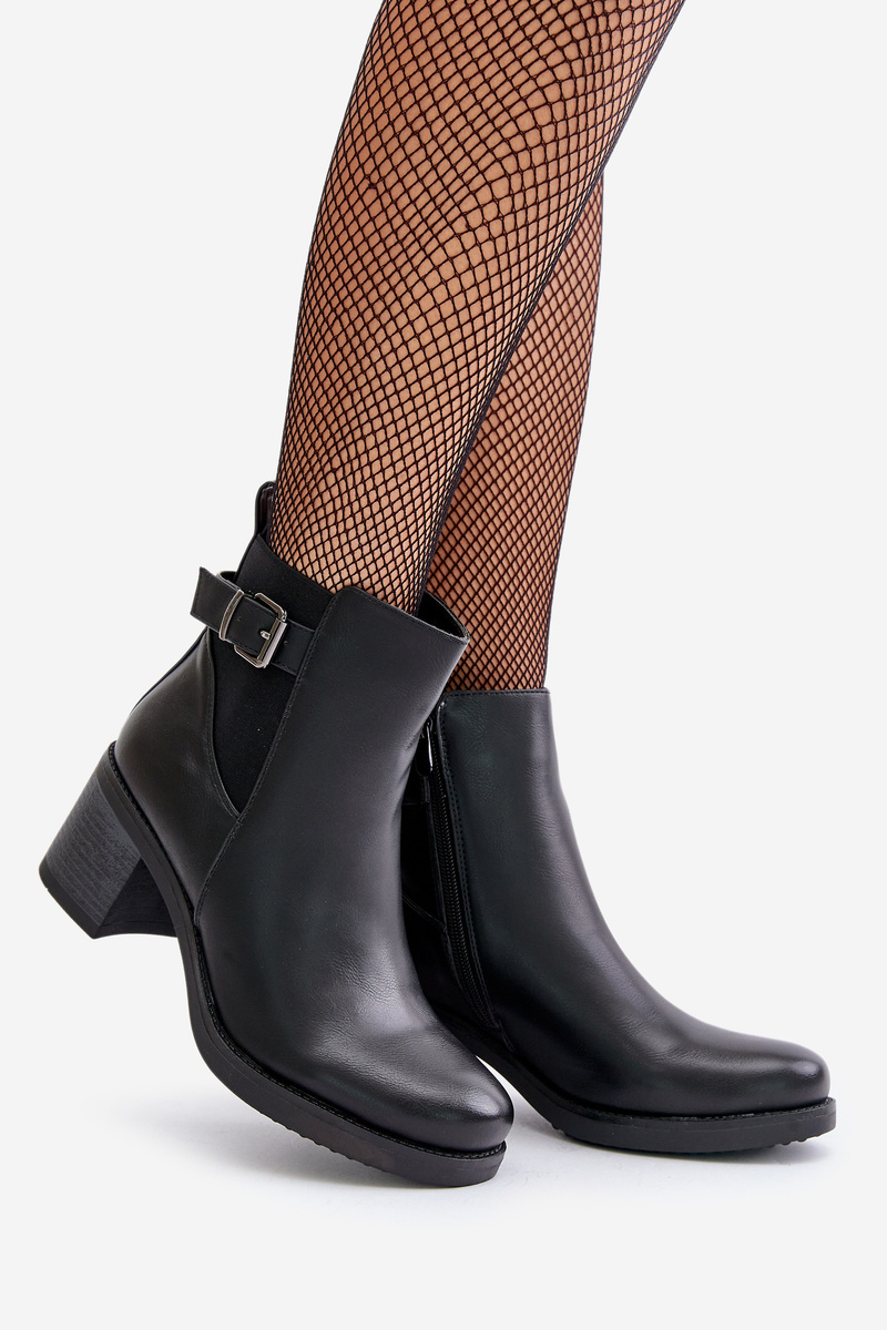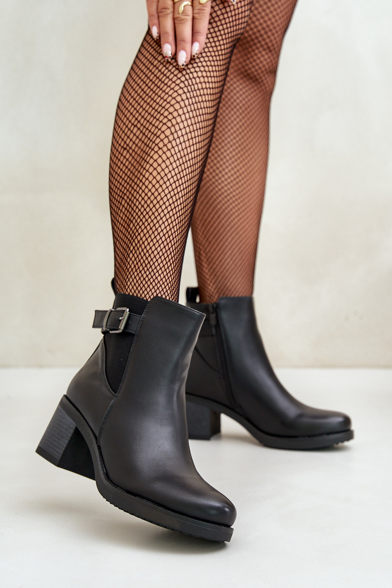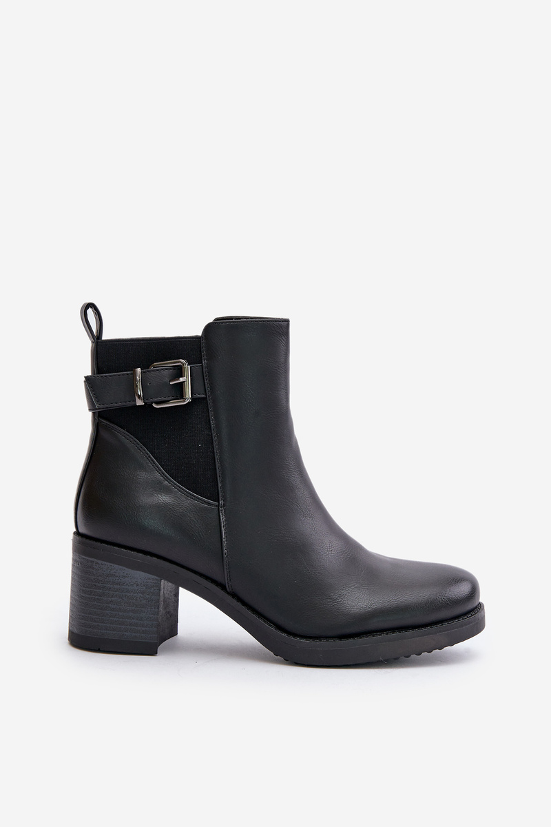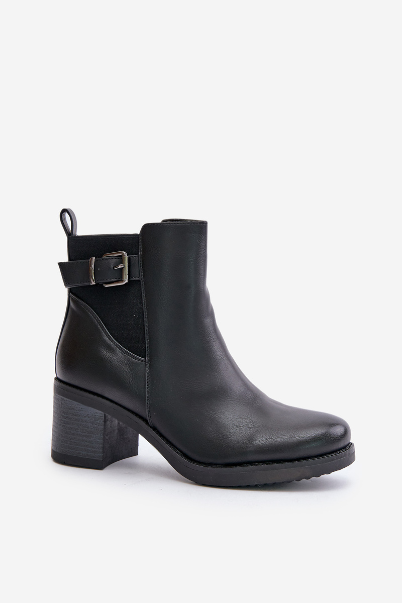 Теплі черевики на підборах Екошкіра з пряжкою Чорні Eriliana