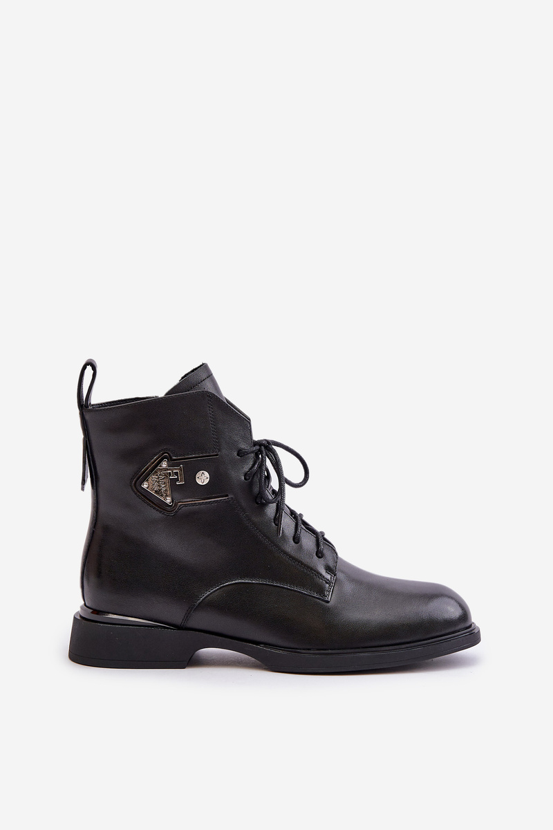 Теплі шкіряні ботильйони на плоскій підошві Maciejka N3115-01 Чорні