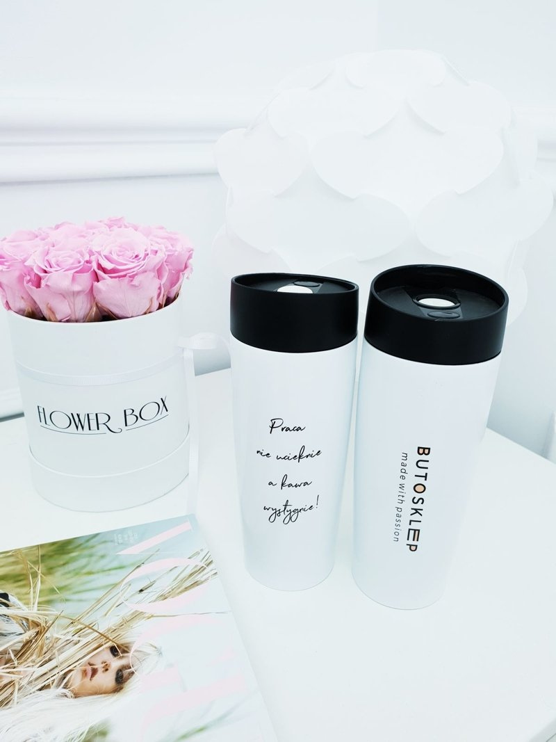 Термокружка ємністю 350 мл, з одного боку логотип, з іншого смішний, але правдивий текст :) Подвійні стінки з нержавіючої сталі з вакуумом між стінками, тому зберігає функції термоса і зберігає температура протягом тривалого часу, не видаючи його, пластикова кришка, герметична кришка, функція push open / close, не потрібно працювати обома руками, матове покриття. Розміри: 21 х 6,5 см Вага: 250 г