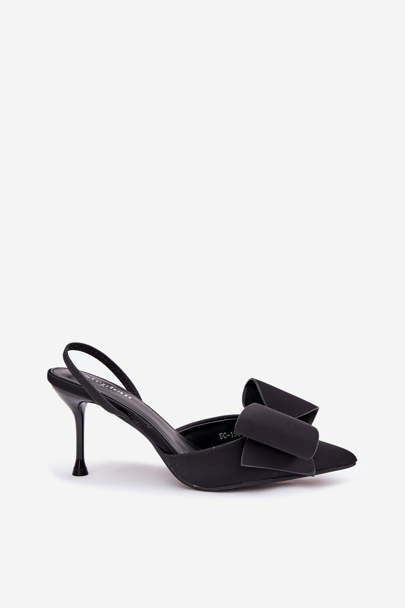 Туфлі На Каблуках З Відкритими Пятами І Бантом Чорні Eklevia
