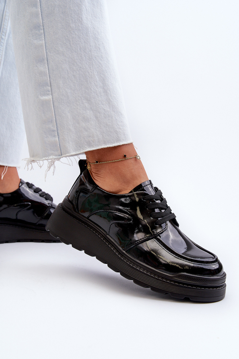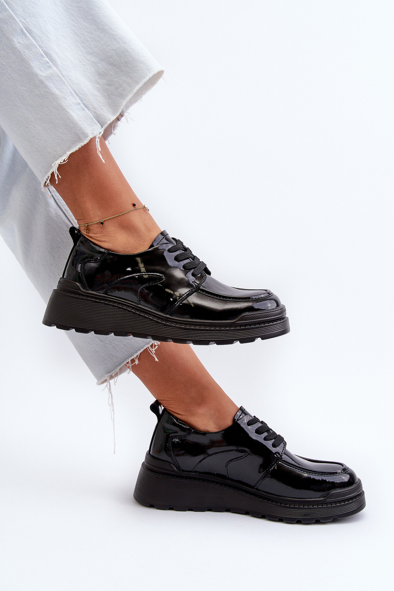 Жіночі лаковані туфлі — ідеальне поєднання елегантності та комфорту. Шнурівка забезпечує відмінне прилягання до стопи. М'яка і зручна устілка гарантує комфорт під час використання. Закруглені пальці додають вишуканості. Відмінний вибір для жінок, які шукають стильне взуття для різних випадків! Обираючи розмір, орієнтуйтеся на таблицю розмірів.