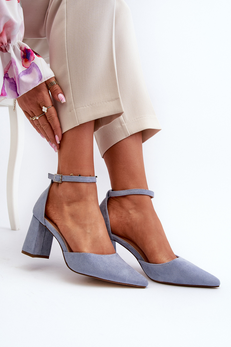 Стильні жіночі туфлі на високому каблуці. Виготовлена ​​з еко замші. Загострені пальці візуально витончують ноги, а регульована застібка на пряжці забезпечує ідеальну посадку. Ідеально підходить для вечірніх виходів і різноманітних сімейних свят! Обираючи розмір, орієнтуйтеся на таблицю розмірів.