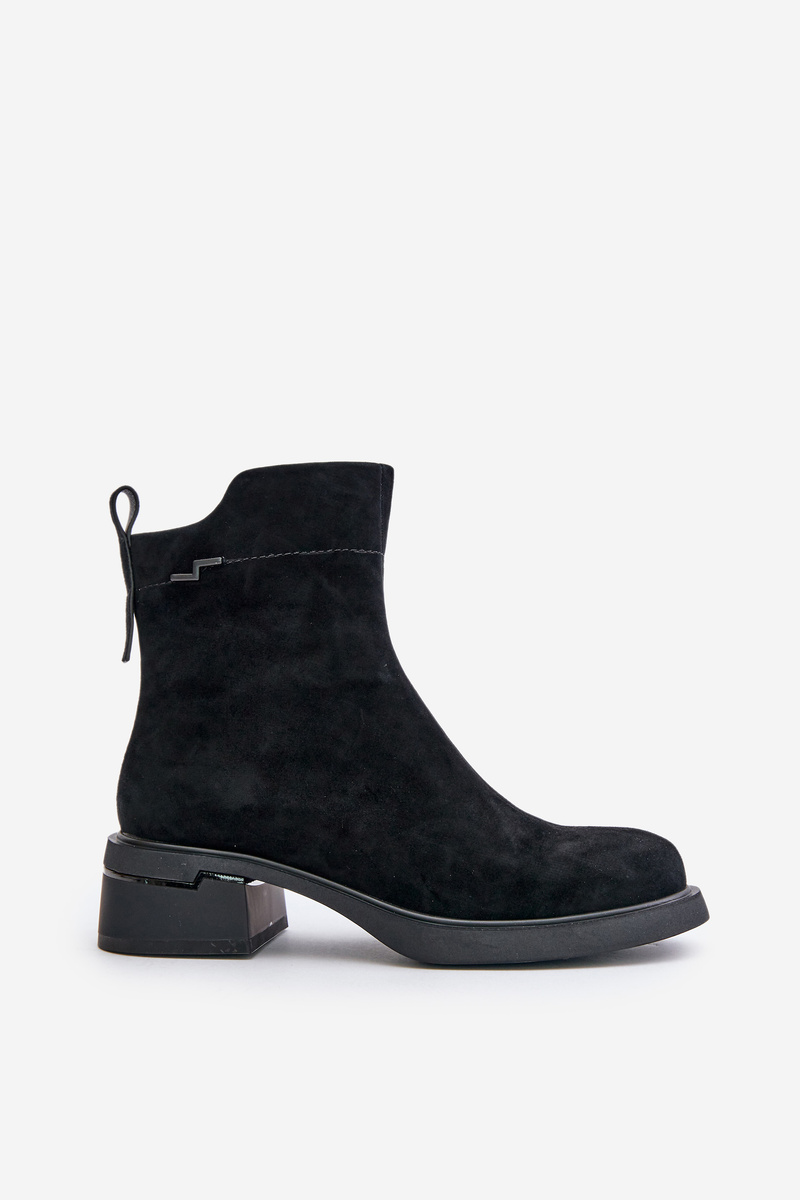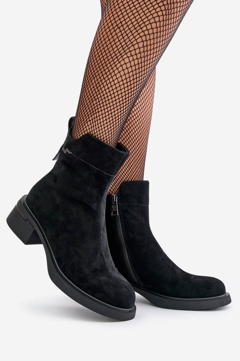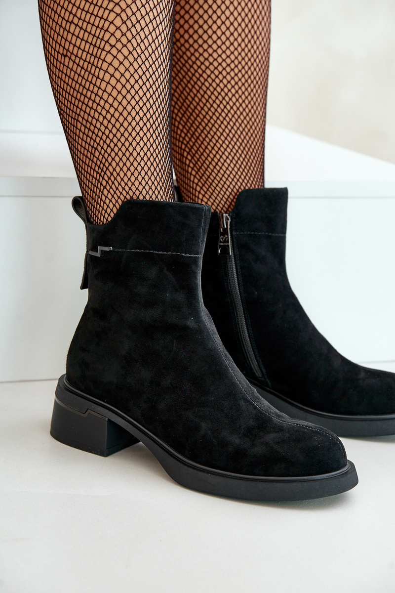 Утеплені жіночі ботильйони з натуральної замші на блискавці чорні Vinceza 66696