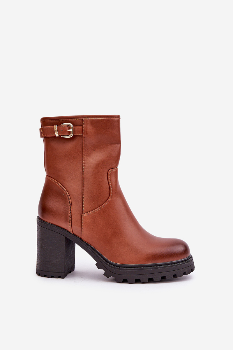 Утеплені черевики на підборах з пряжкою коричневі Selavia
