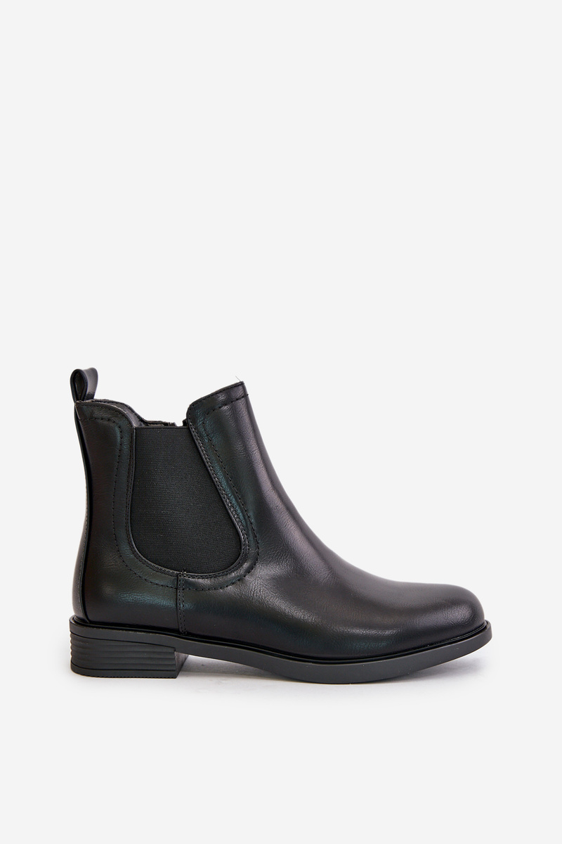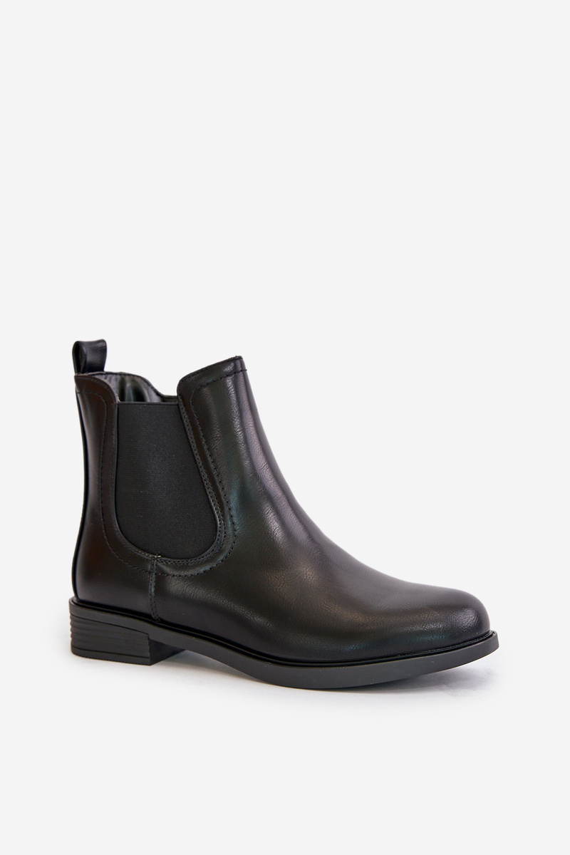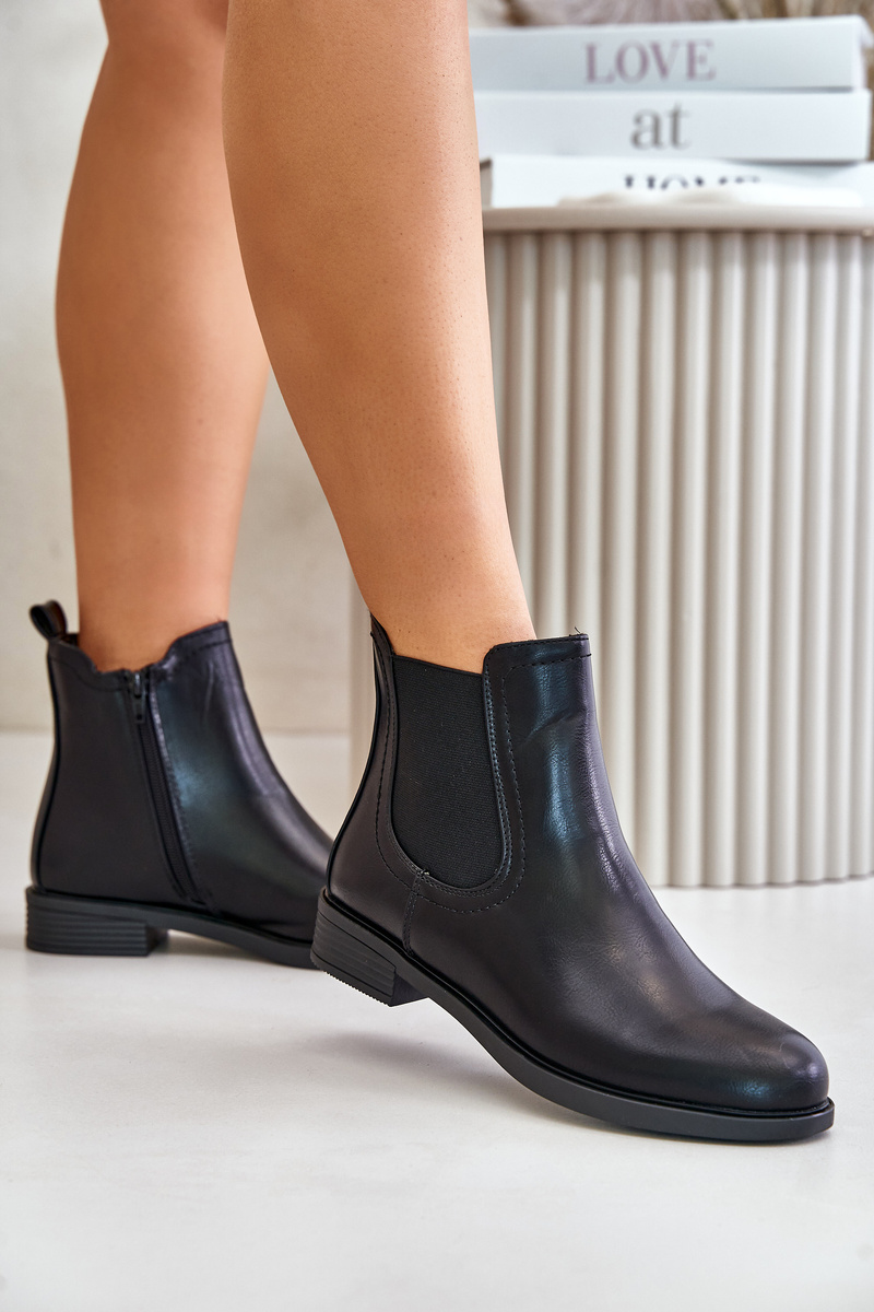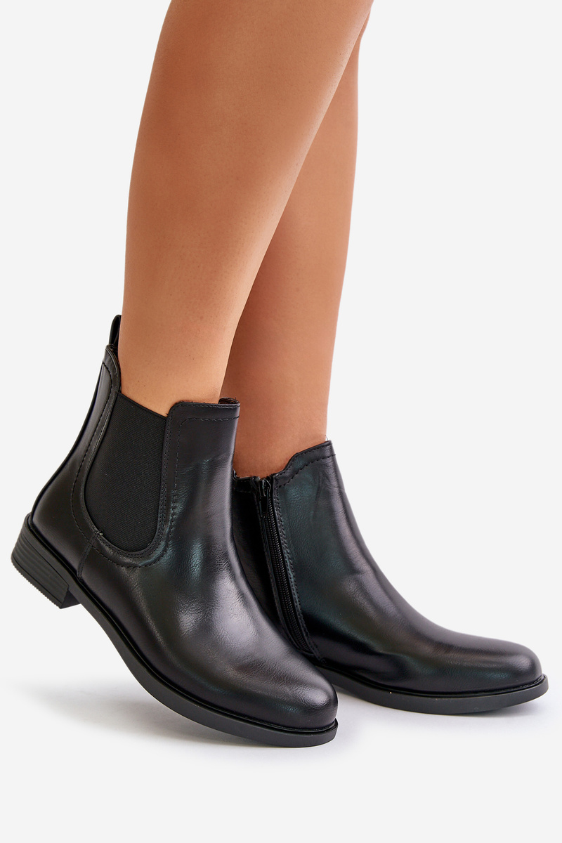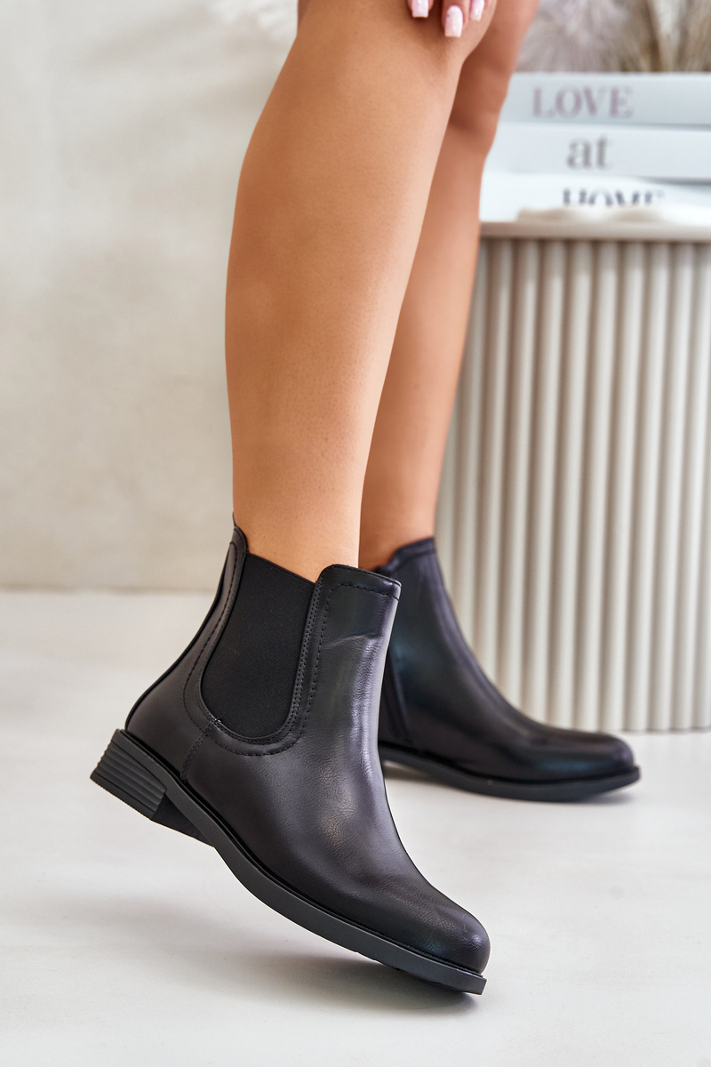 Жіночі ботильйони з еко шкіри. Модель має низький верх з еластичною вставкою. Пальці ніг округлі. Внутрішня підкладка з термовзуття. Комплект на плоскій каблуці. Цей класичний стиль обов'язково повинен бути вашим! Обираючи розмір, орієнтуйтеся на таблицю розмірів.