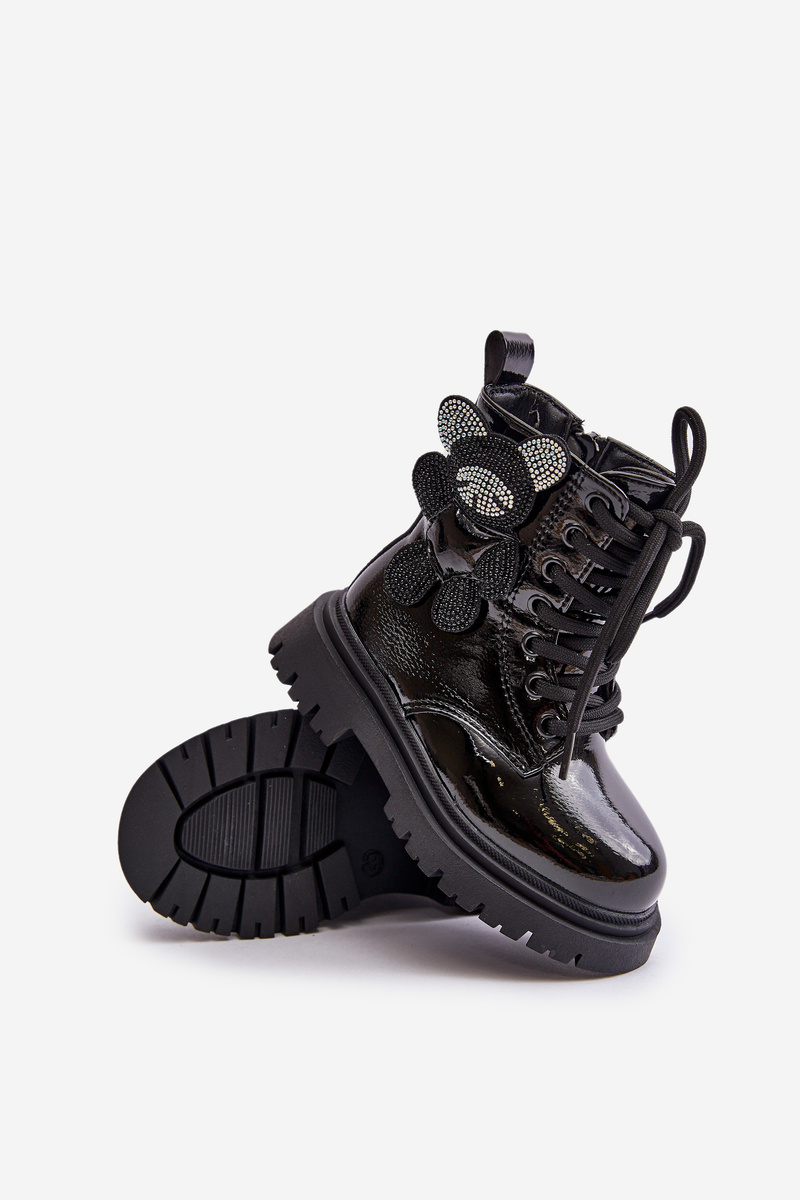 Черевики для дівчинки з еко шкіри. Застібається на блискавку і додатково зашнуровується, що забезпечує ідеальне прилягання до стопи. Салон утеплений хутром. Милий ведмедик на древку додає неповторного шарму, що робить їх ідеальним вибором для маленьких модниць! Обираючи розмір, орієнтуйтеся на таблицю розмірів.