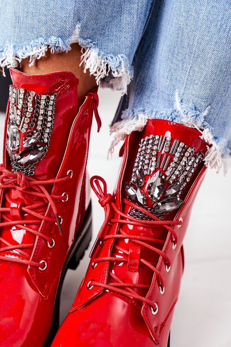Утеплені чоботи з кубічним цирконієм, лакованим Red Attention