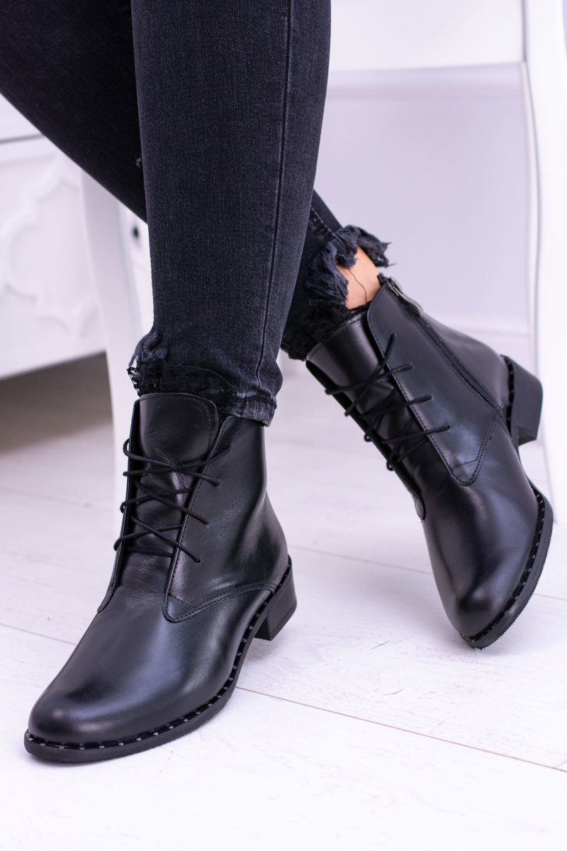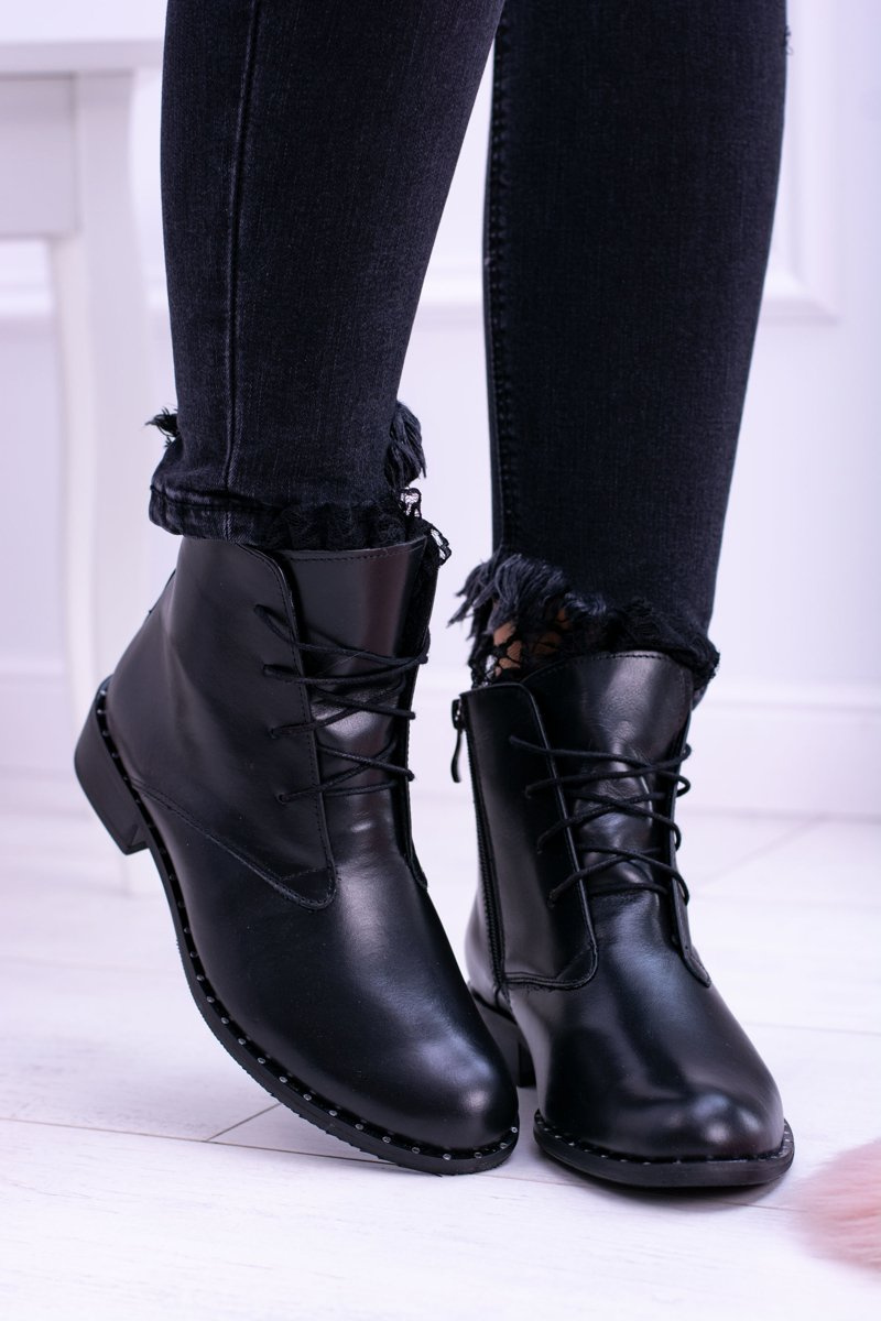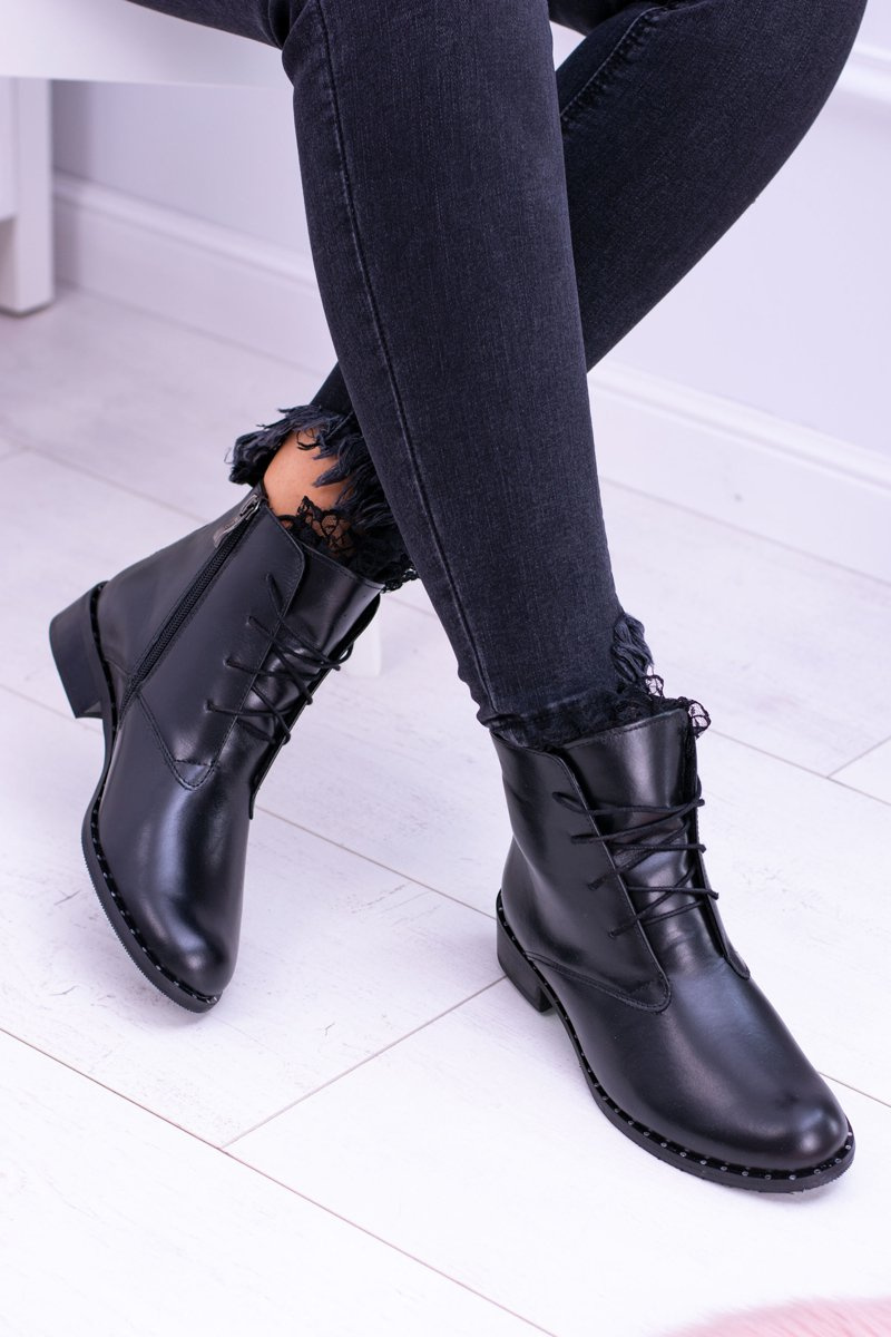 Наша чудова колекція чобіт постійно поповнюється. Цього разу ми доповнили його класичною моделлю шкіряних чобіт. Утеплений фетровий салон, ніжне мереживо на язичку та імітація заклепок на підошві. Чи потрібно нам щось більше, щоб почуватися комфортно та модно? Ідеальні черевики для холодних днів. Не зволікайте та придбайте їх зараз за чудовою ціною!