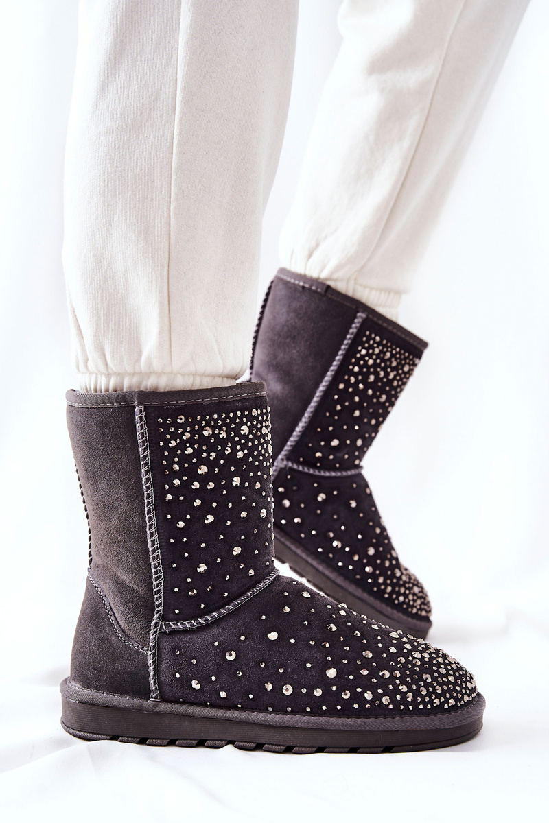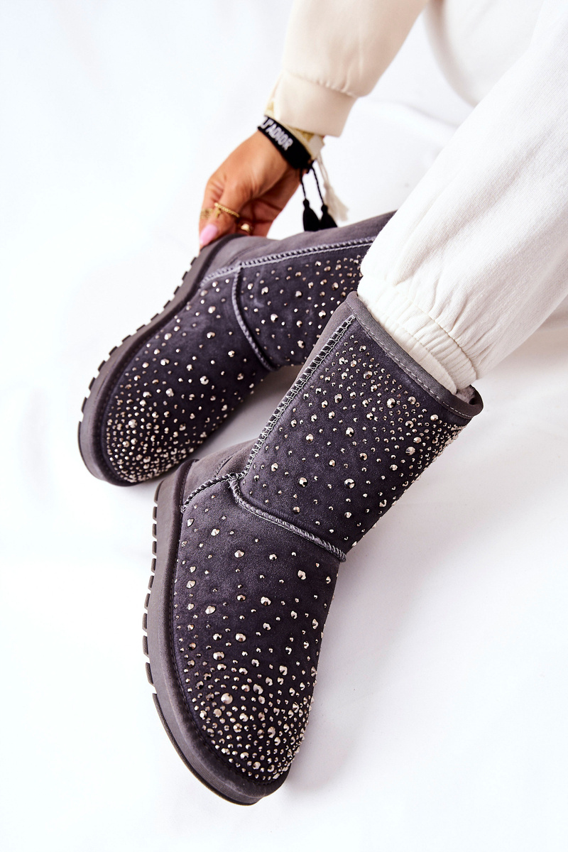 Утеплювальні снігові чоботи зі стразами Grey Mariella
