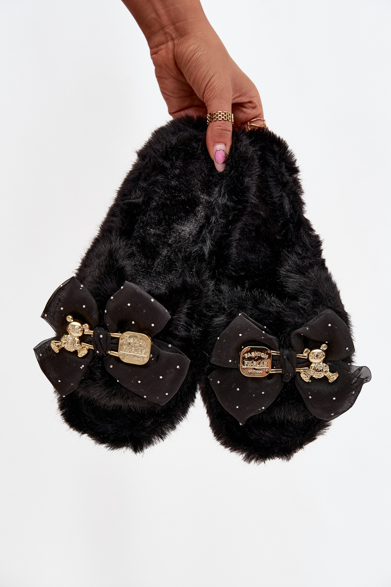 Жіночі хутряні тапочки — ідеальне поєднання комфорту та модних деталей. Виготовлені з м'якого, приємного на дотик штучного хутра, вони забезпечують винятковий комфорт і тепло. Увагу привертає бантик спереду, прикрашений золотою брошею у вигляді ведмедика з написом — це делікатна, але ефектна деталь, яка додає всьому образу чарівності та оригінального характеру. За допомогою цих тапочок щоденні миті вдома стають ще приємнішими і стильнішими. Будь ласка, ознайомтеся з таблицею розмірів при виборі розміру. Будь ласка, зверніться до розмірної сітки при виборі розміру.