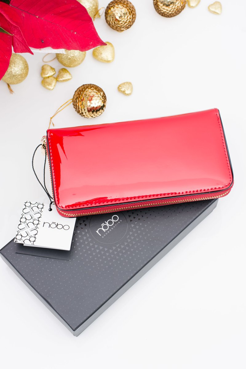 Доповненням будь-якого жіночого стилю є не лише сумочка та взуття, а й вдало підібраний гаманець. Гаманці відомої компанії NOBO цінують усі жінки. Представлена модель оброблена високоякісною лакованою екологічною шкірою. Гаманець застібається на золотисту блискавку. Всередині одного відділення є 8 кишень для карток, 1 велике відділення на блискавці для монет і 2 додаткових відділення для інших документів.