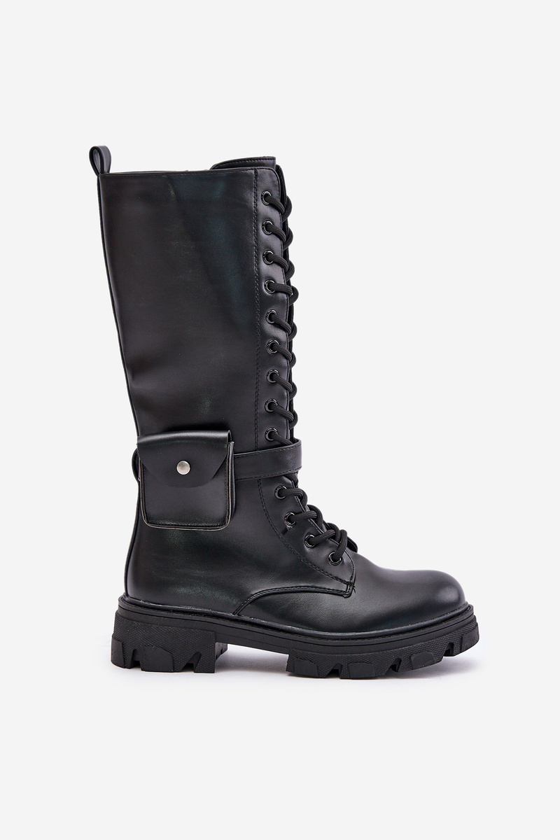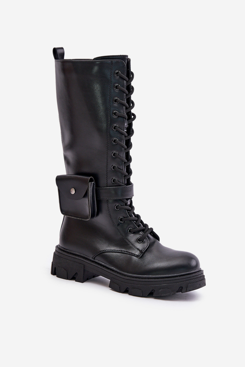 Черевики бойові утеплені до середини ікри з підсумком чорного кольору Temisza