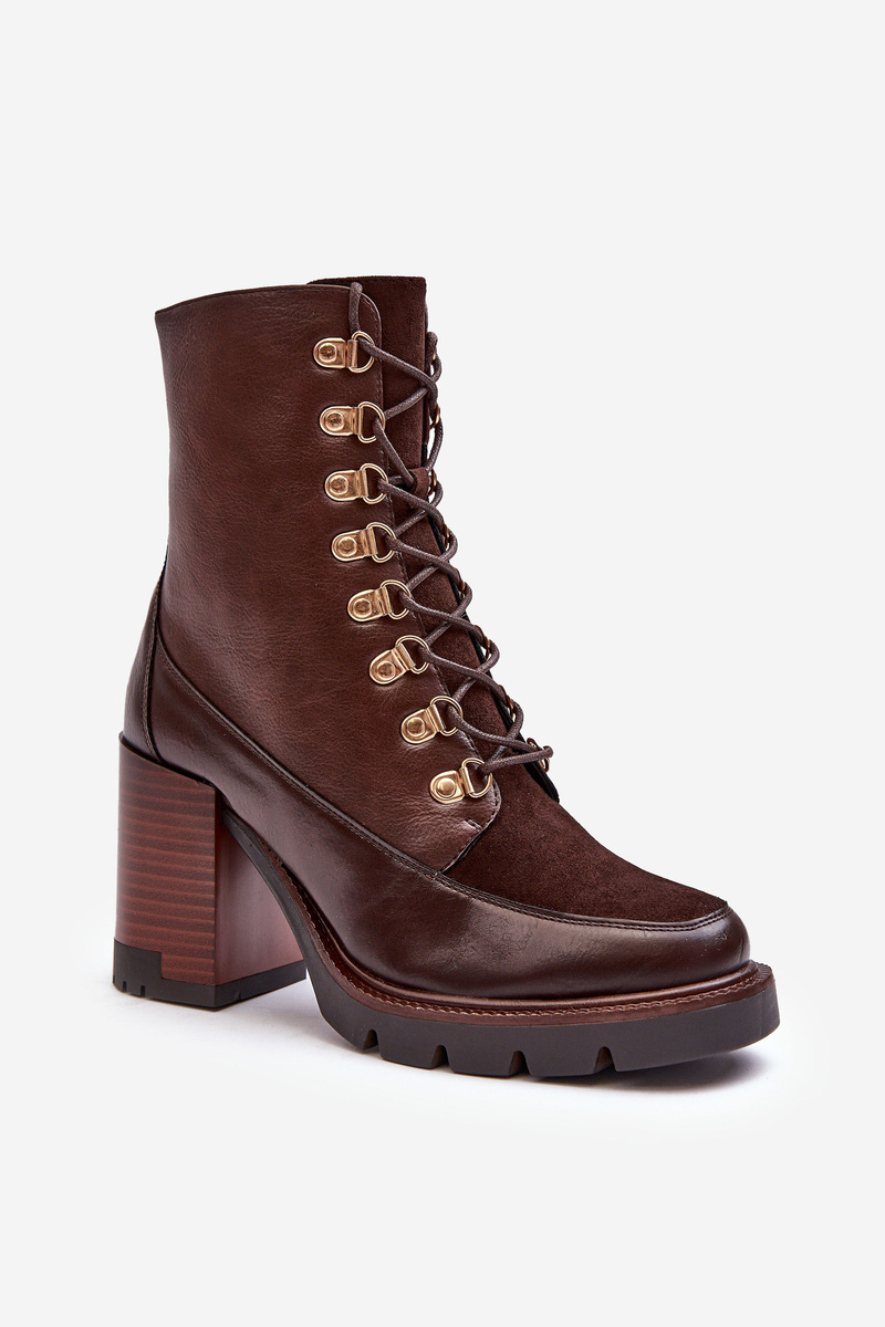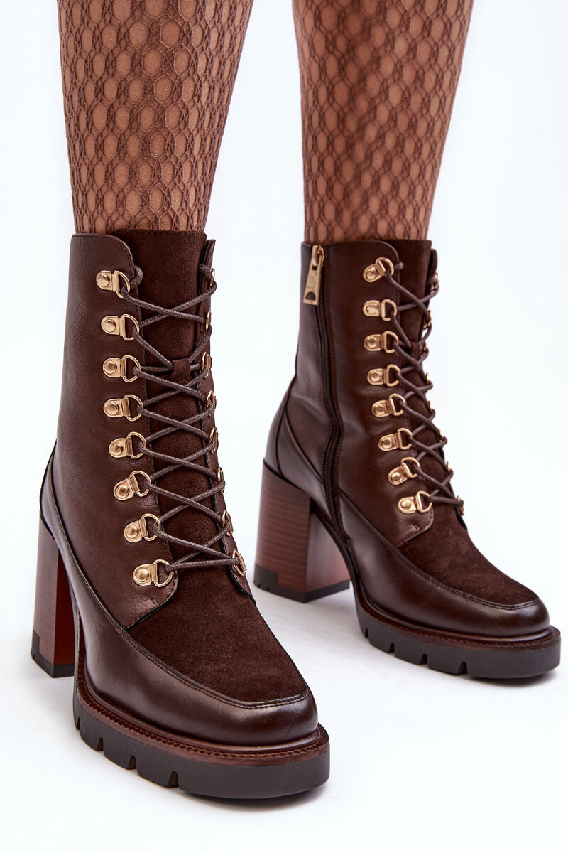 Черевики на масивному каблуці та платформі. Виготовлені з комбінації еко шкіри та еко замші. Збоку застібається на блискавку. Додатково мають шнурівку. Салон утеплений взуттєвою ковдрою. Заокруглені пальці. Посилена стійка. Вибираючи розмір, орієнтуйтеся на таблицю розмірів.