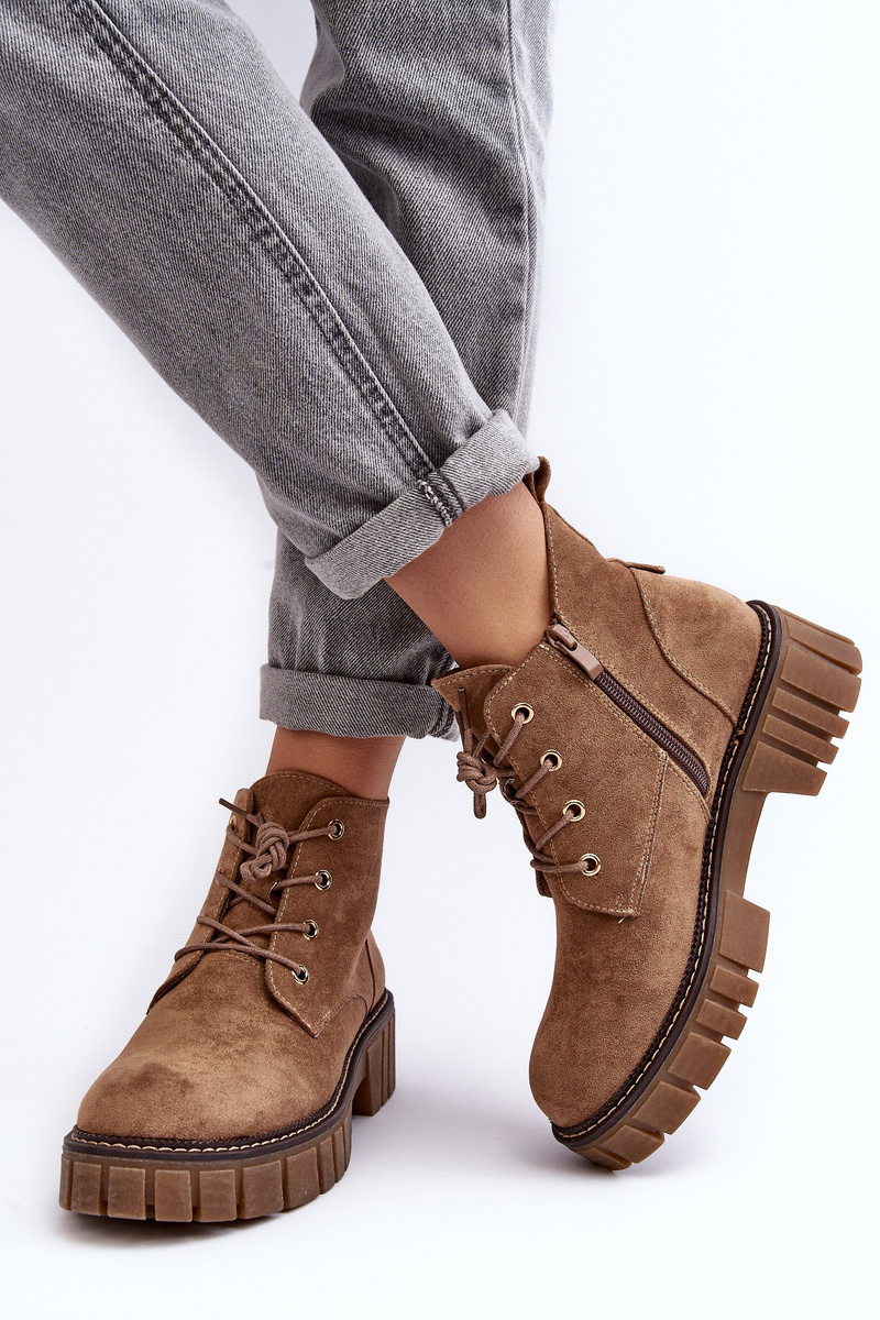 Класичні жіночі чоботи ідеально підійдуть для холодних осінніх днів. Мають утеплювач у вигляді ковдри для взуття. Вони кріпляться на плоску стійку п'яту з пазами. Крім того, вони мають жорсткий каблук. Модель із застібкою-блискавкою збоку верху та шнурівкою. Чоботи ідеально підходять для багатьох стилів. При виборі розміру скористайтеся таблицею розмірів.