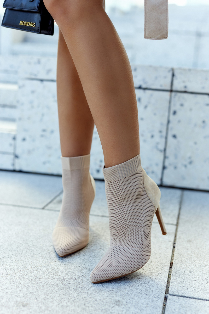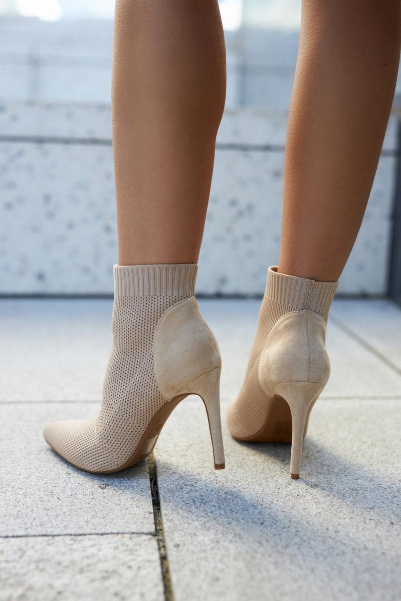 Черевики мають стильний верх щиколотки, схожий на носок. Встановіть на шпильку. Гострий носок ідеально витончить стопу. Модель сліпони, ідеально облягає ногу. Верх виконаний з комбінації еластичного ребристого текстильного матеріалу та екошкіри. Устілка з еко шкіри. Взуття має жорсткий каблук. Ідеально підходить для джинсів, джоггерів або подовжених тунік. При виборі розміру дотримуйтеся таблиці розмірів.