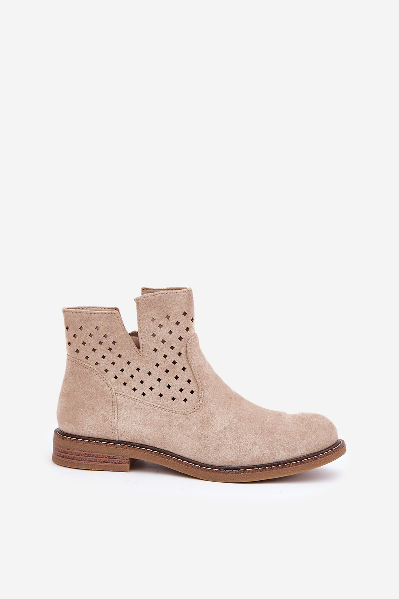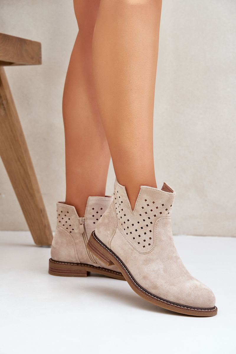 Чоботи На Плоскому Каблуці З Перфорованою Шкірою Світло-бежеві Elivaya