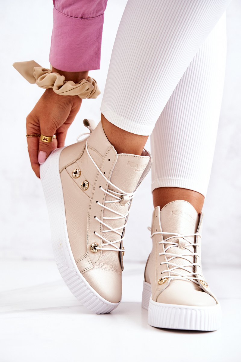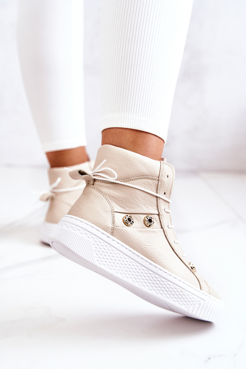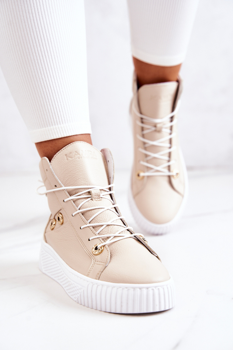 Чоботи високі шкіряні кросівки бежево-білі Ashlee