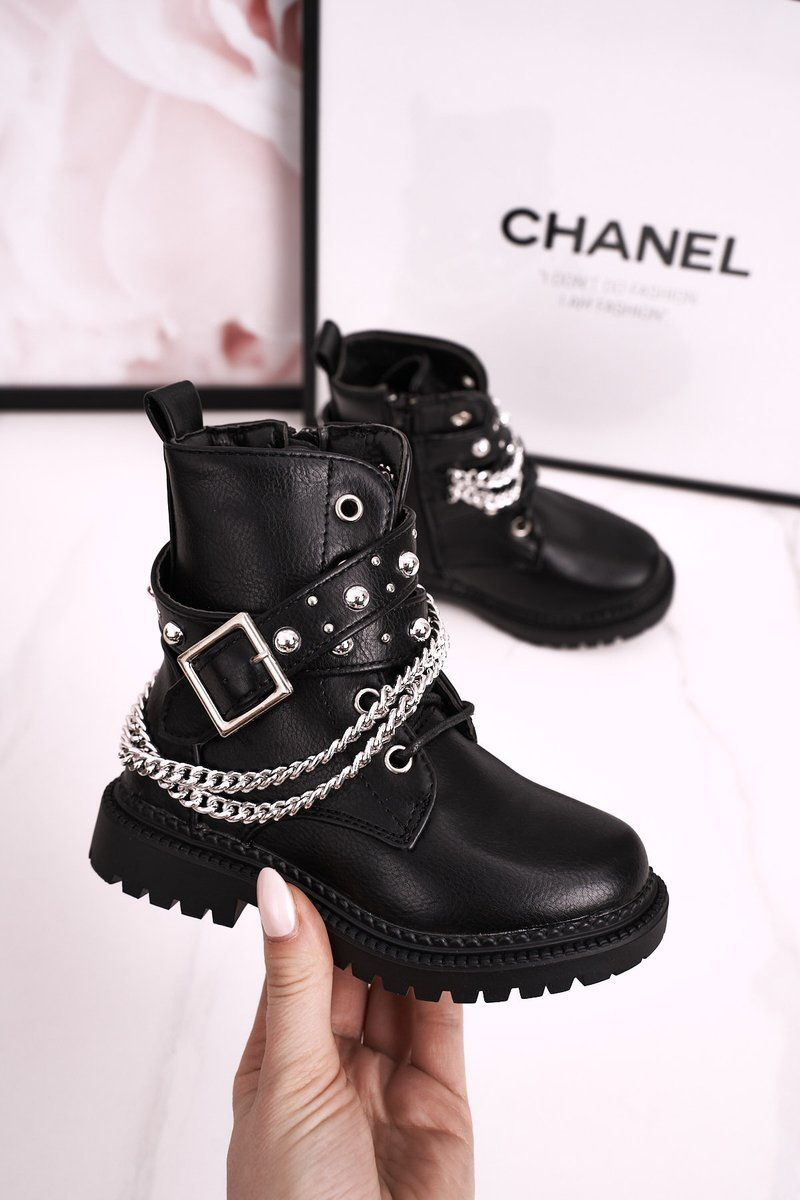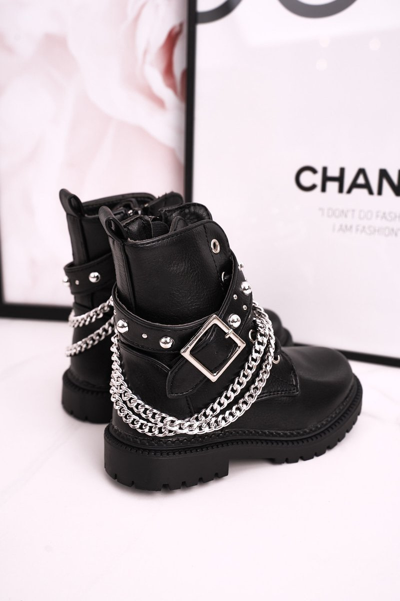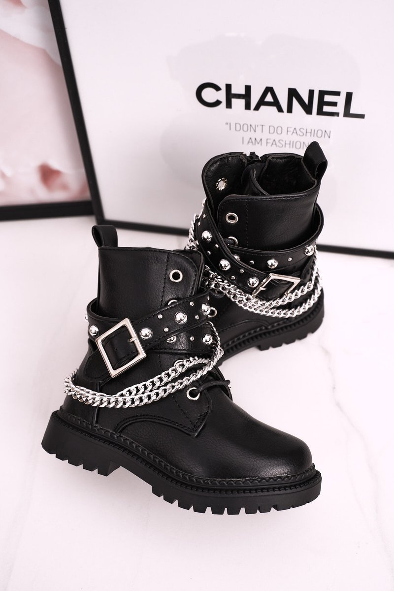 Чоботи дитячі на ланцюжку утеплені хутром Доллі чорного кольору